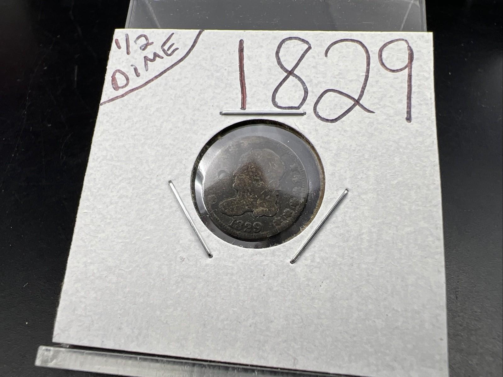 1829 Capped Bust Head Half Dime Coin VG / Fine Details Holed Toned