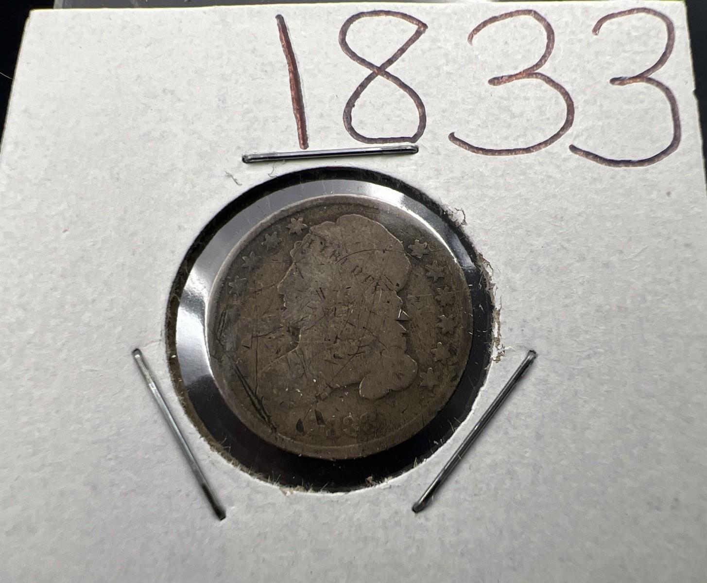1833 10C Capped Bust Dime AG Details Very Circulated SKU#A