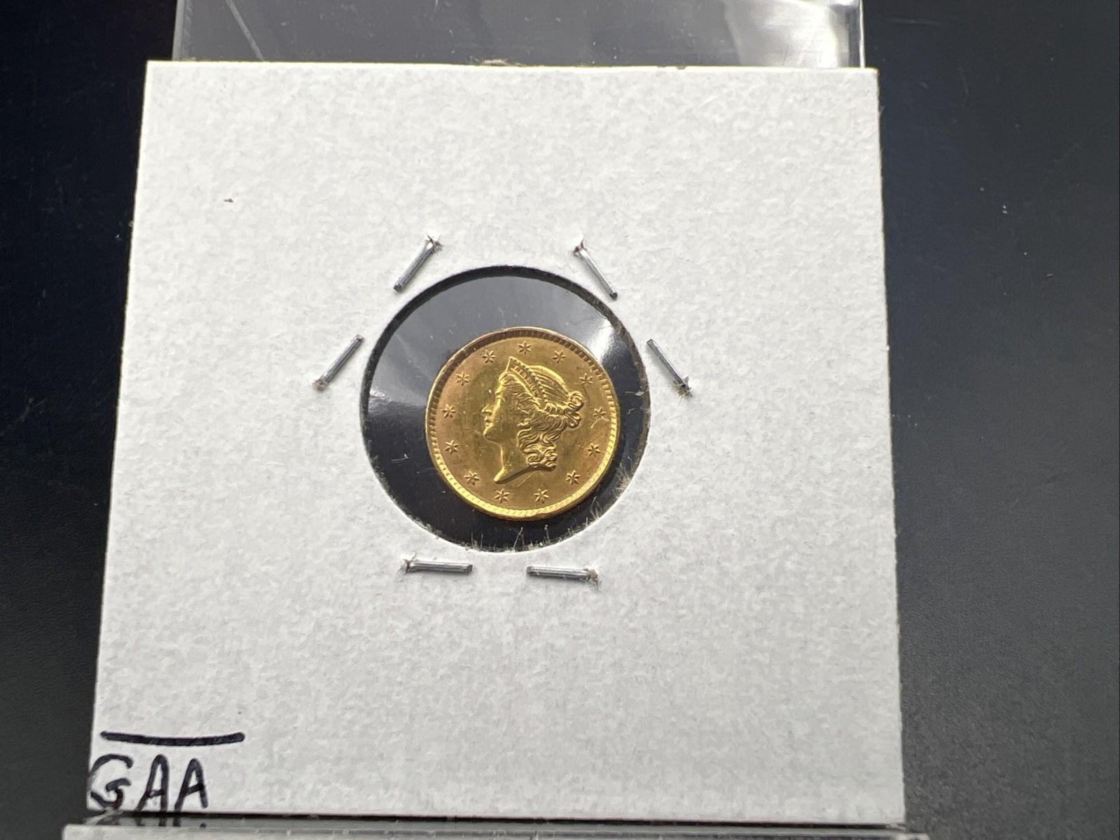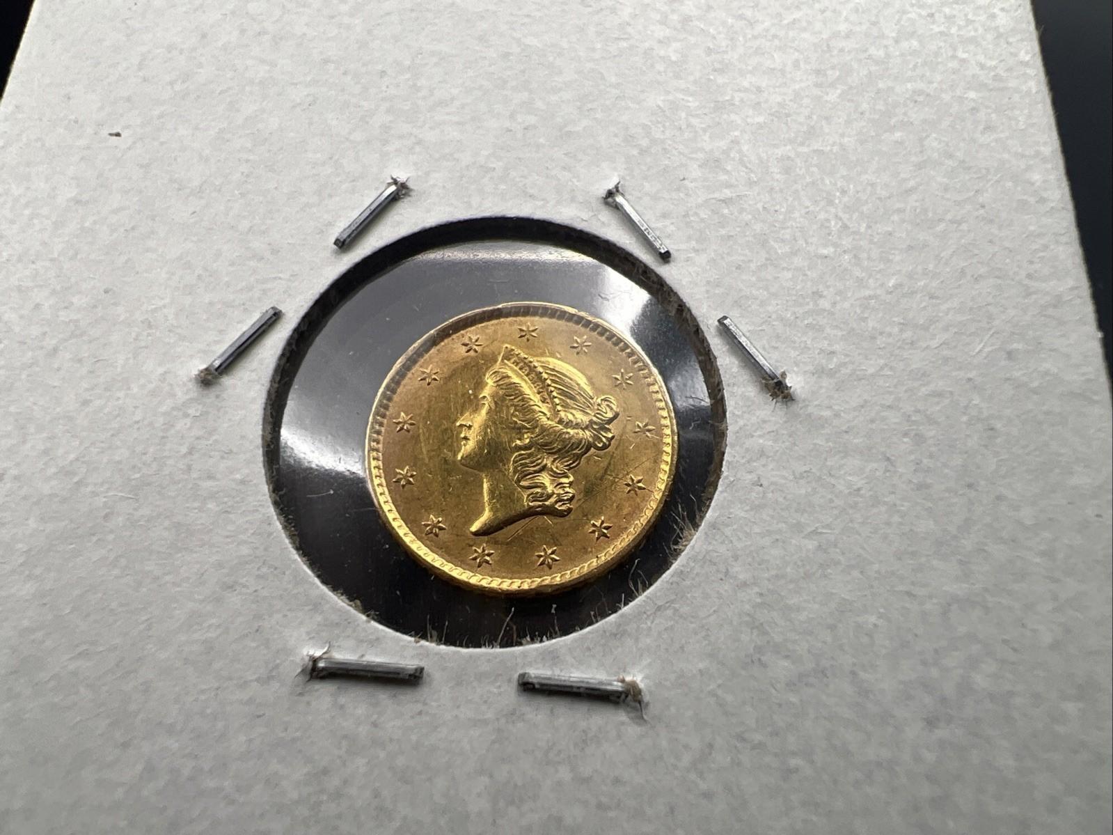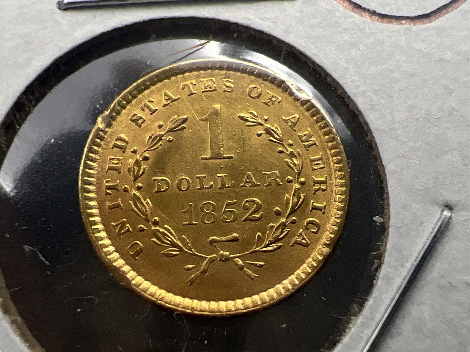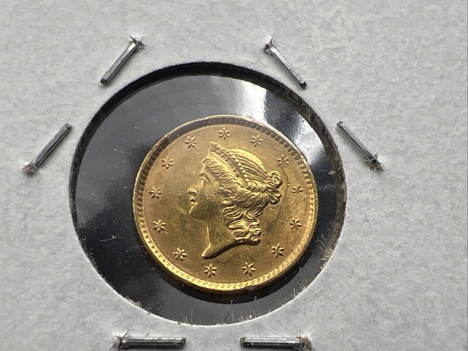 1852 Liberty Head Type I Gold Dollar $1 UNC Details Rim Damage Ex Jewelry