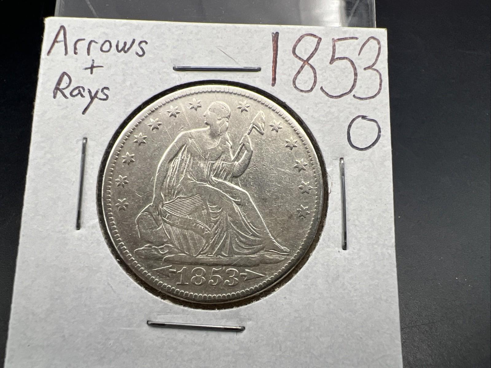1853 O 50c Liberty Seated Half Dollar XF Details w/ Arrows & Rays & Die Crack