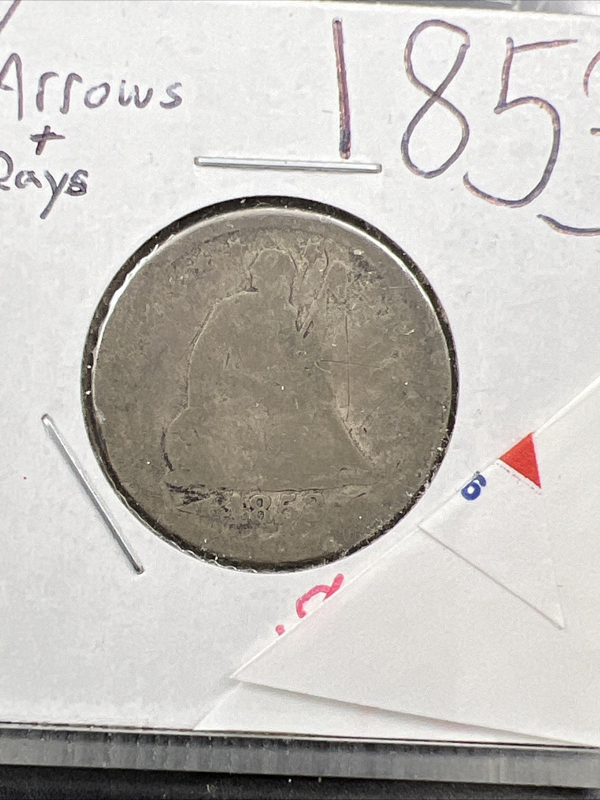 1853 W/A Seated Liberty Silver Quarter Coin Rays Arrows Poor Very Circulated #A