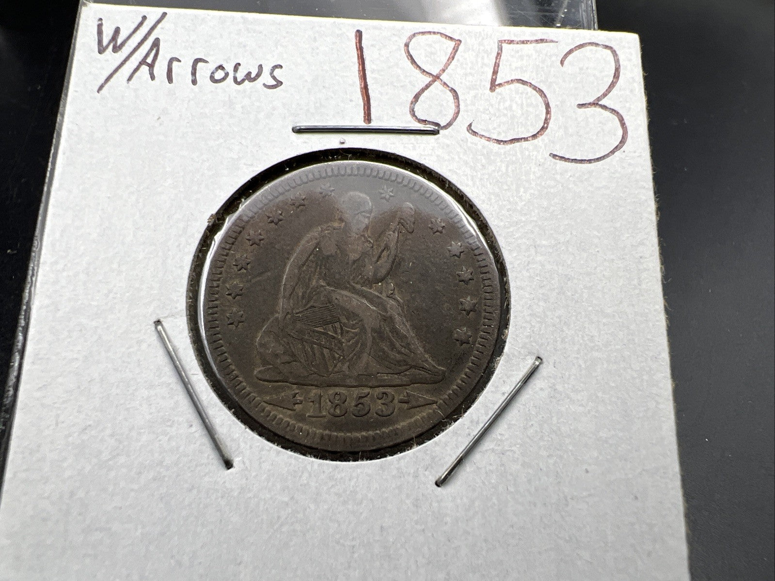 1853 With Arrow & Rays Liberty Seated Silver Quarter VF Very Fine Circulated