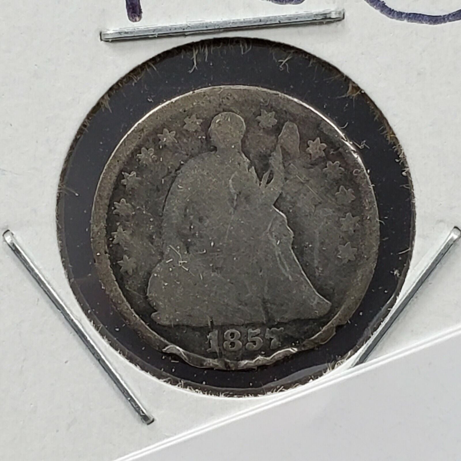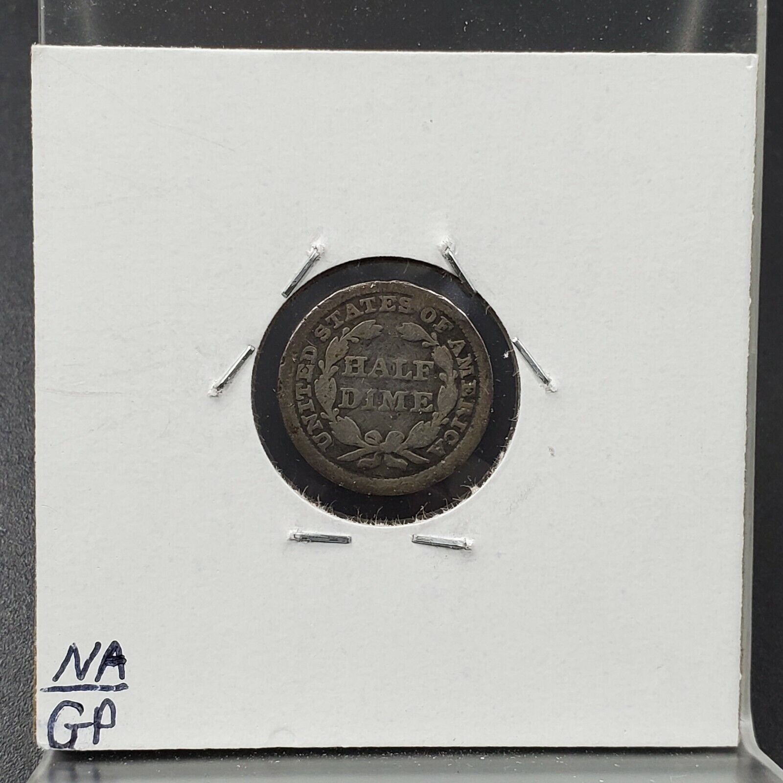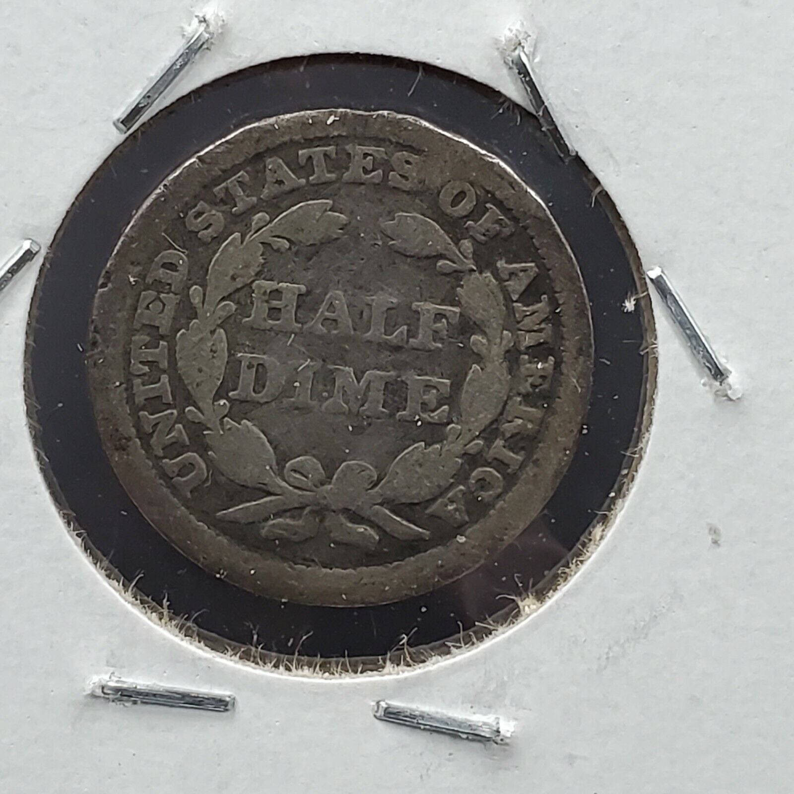 1857 P 5c Seated Liberty Silver Half Dime Coin AG / Good Detail Full Date