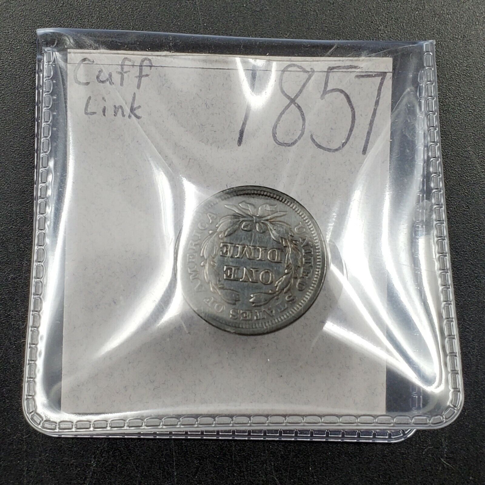 1857 Seated Liberty 10c Silver Dime Coin Turned into a Cuff Link