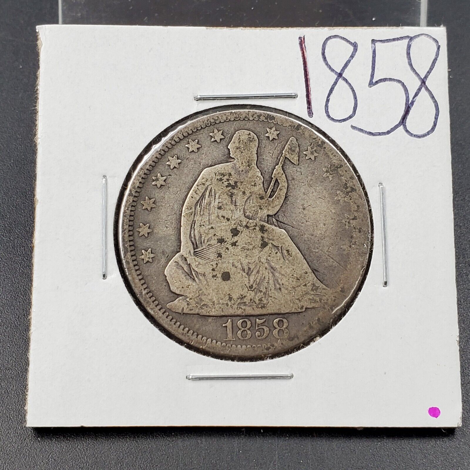 1858 P Seated Liberty Silver Half Dollar 50c Good G Circ