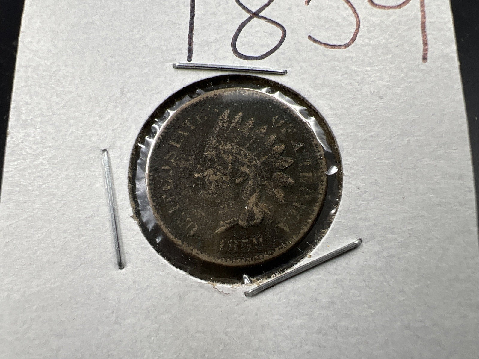 1859 1c Indian Head Cent Penny VG Details Environmental Damage Circulated SKU#B