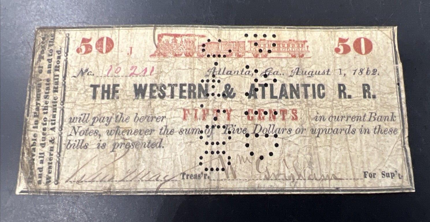 1862 The Western & Atlantic General R. R. Rail Road Atlanta 50c Cents VG Circ #2