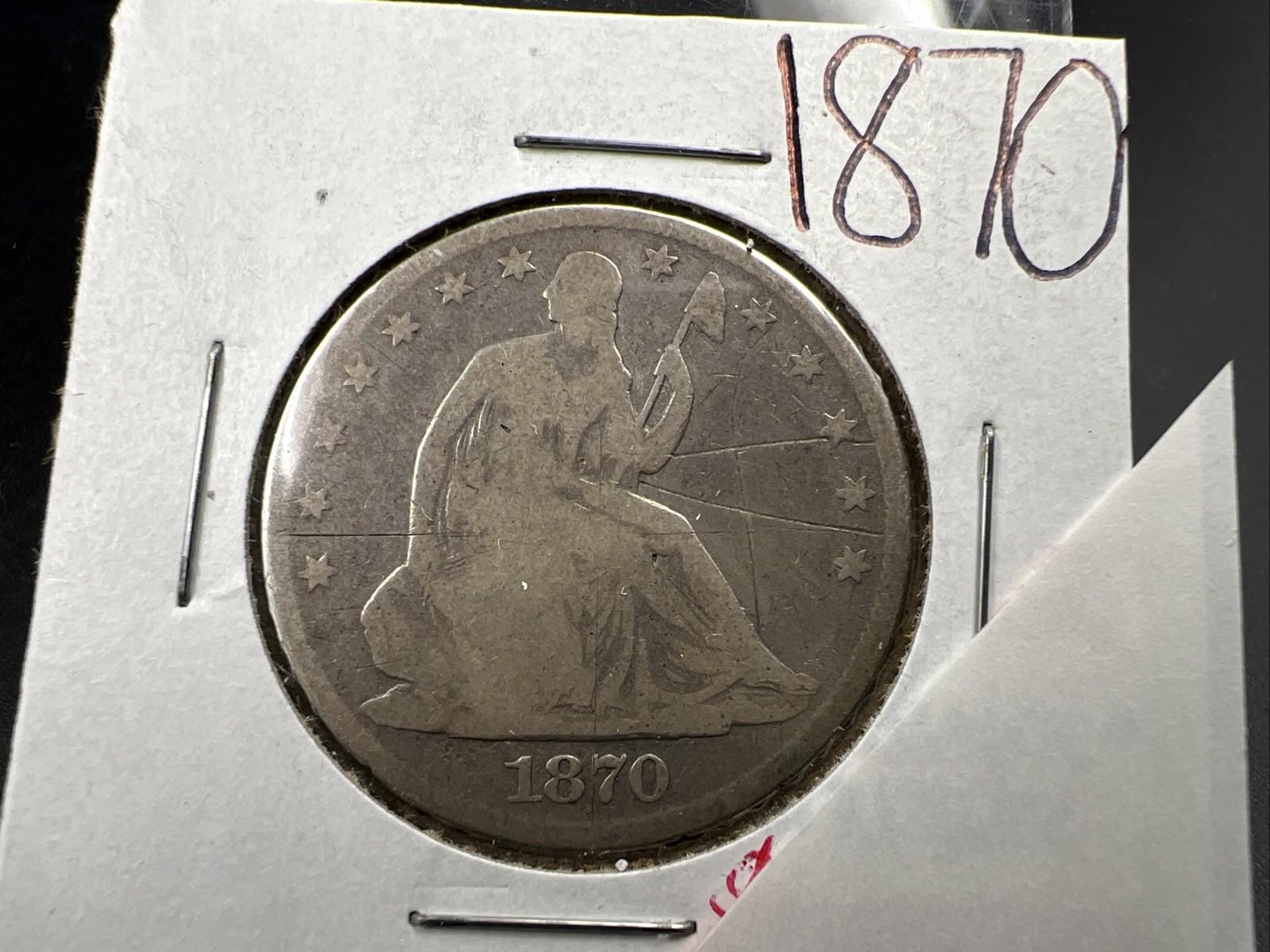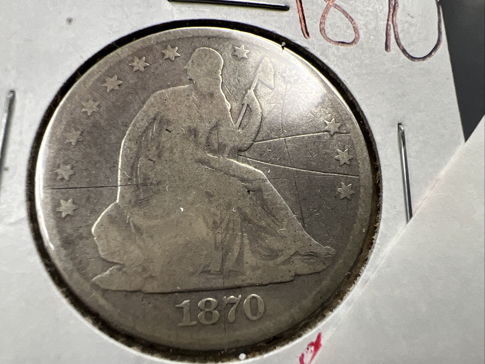 1870 50c Seated Liberty Silver Half Dollar AG / G Details OBV Scratch
