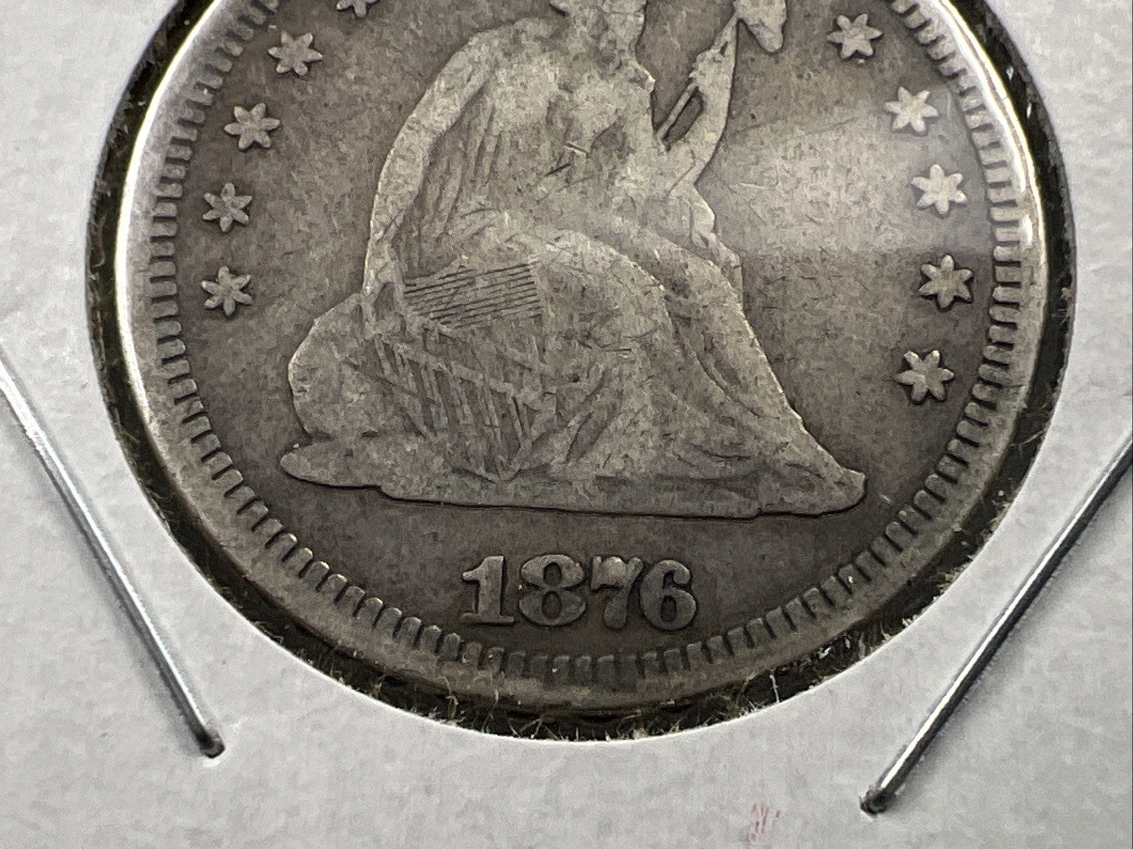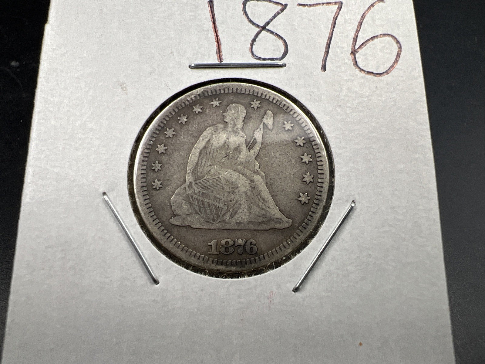 1876 25c Liberty Seated Silver Quarter Coin Fine Circulated