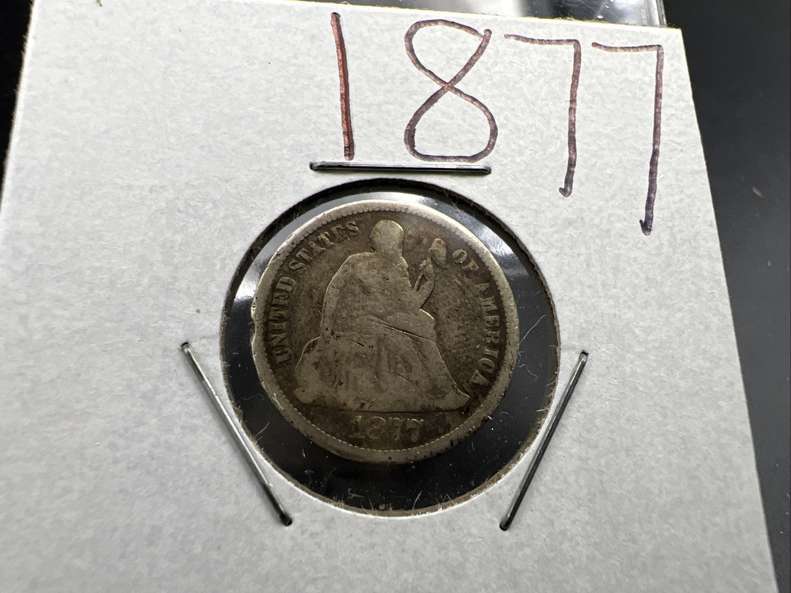 1877 10c Liberty Seated Dime Coin AG About Good Circulated