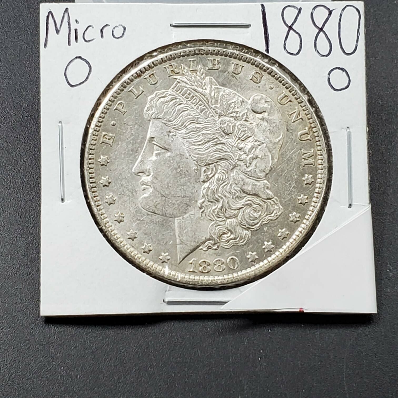 1880 O Morgan Silver Dollar Variety Coin Average UNC Micro o Vam Variety