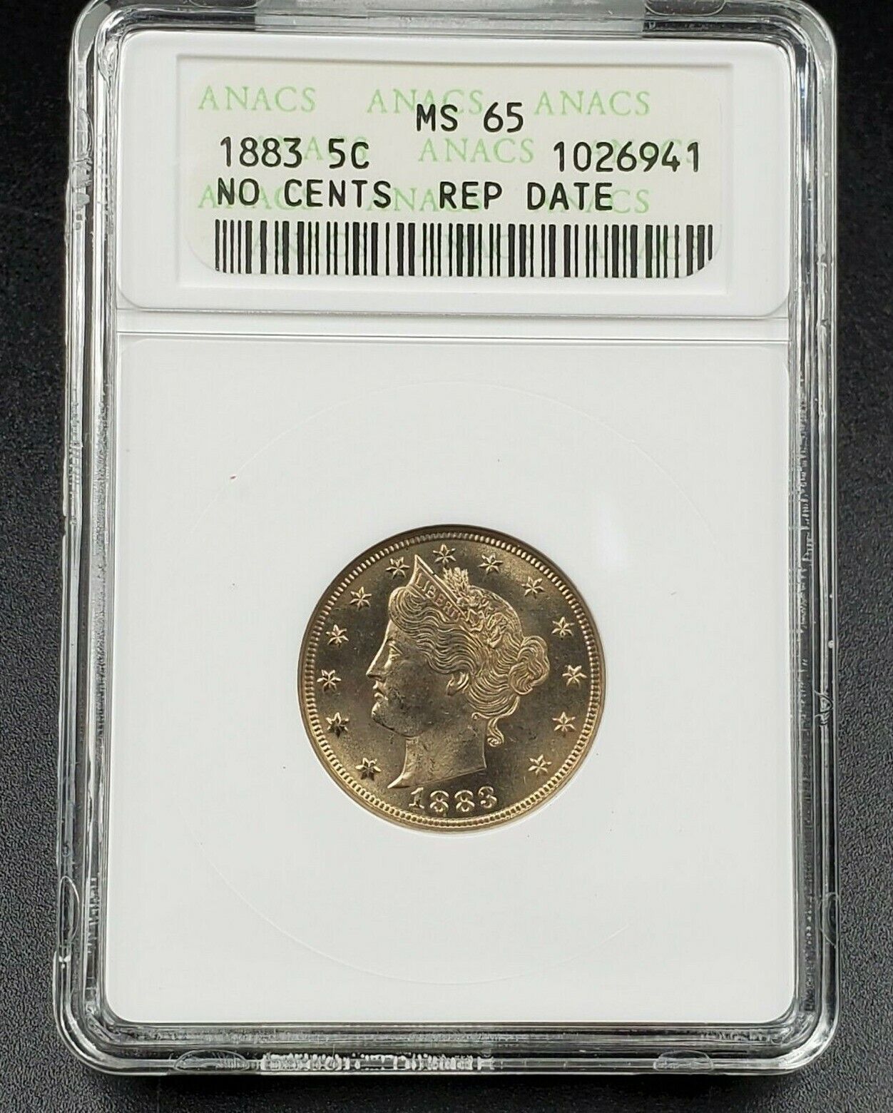 1883 No Cents Liberty V Nickel Variety Coin ANACS MS65 RPD 010 Repunched Date on 1(Inner bill of 1) & 3(inner lower loop)