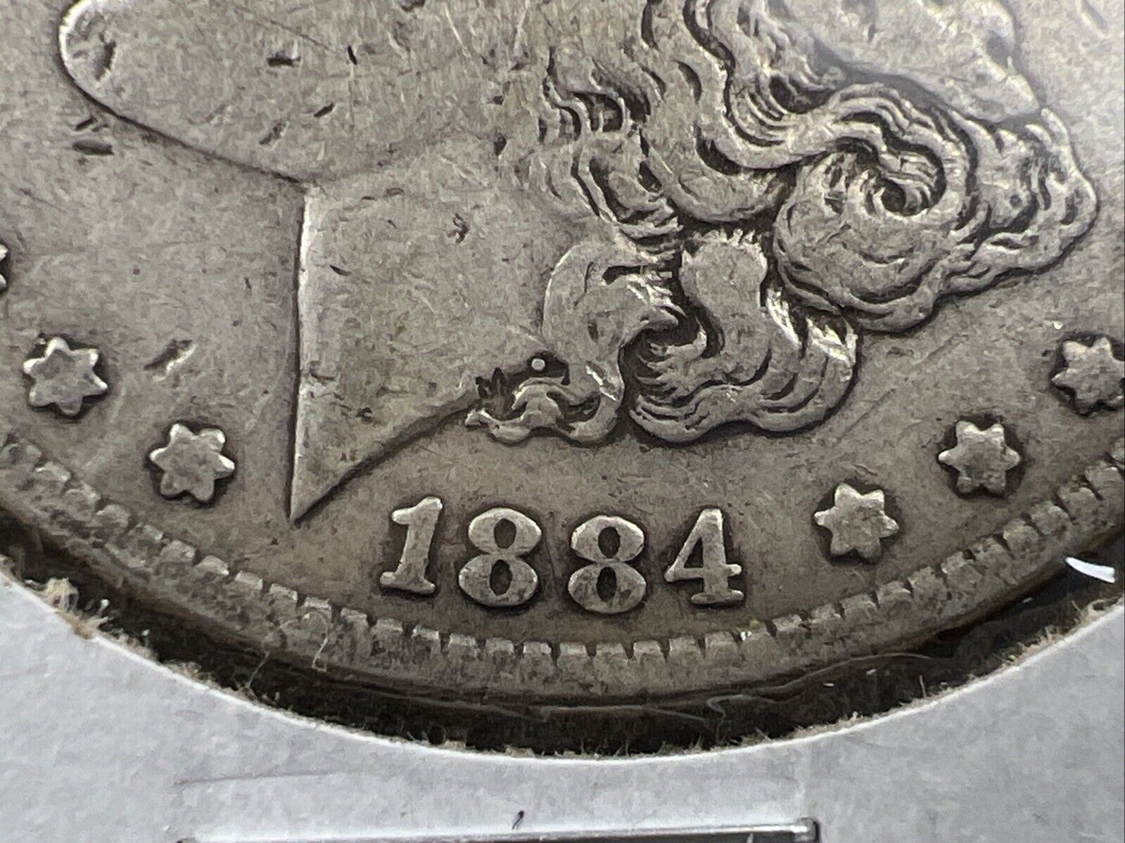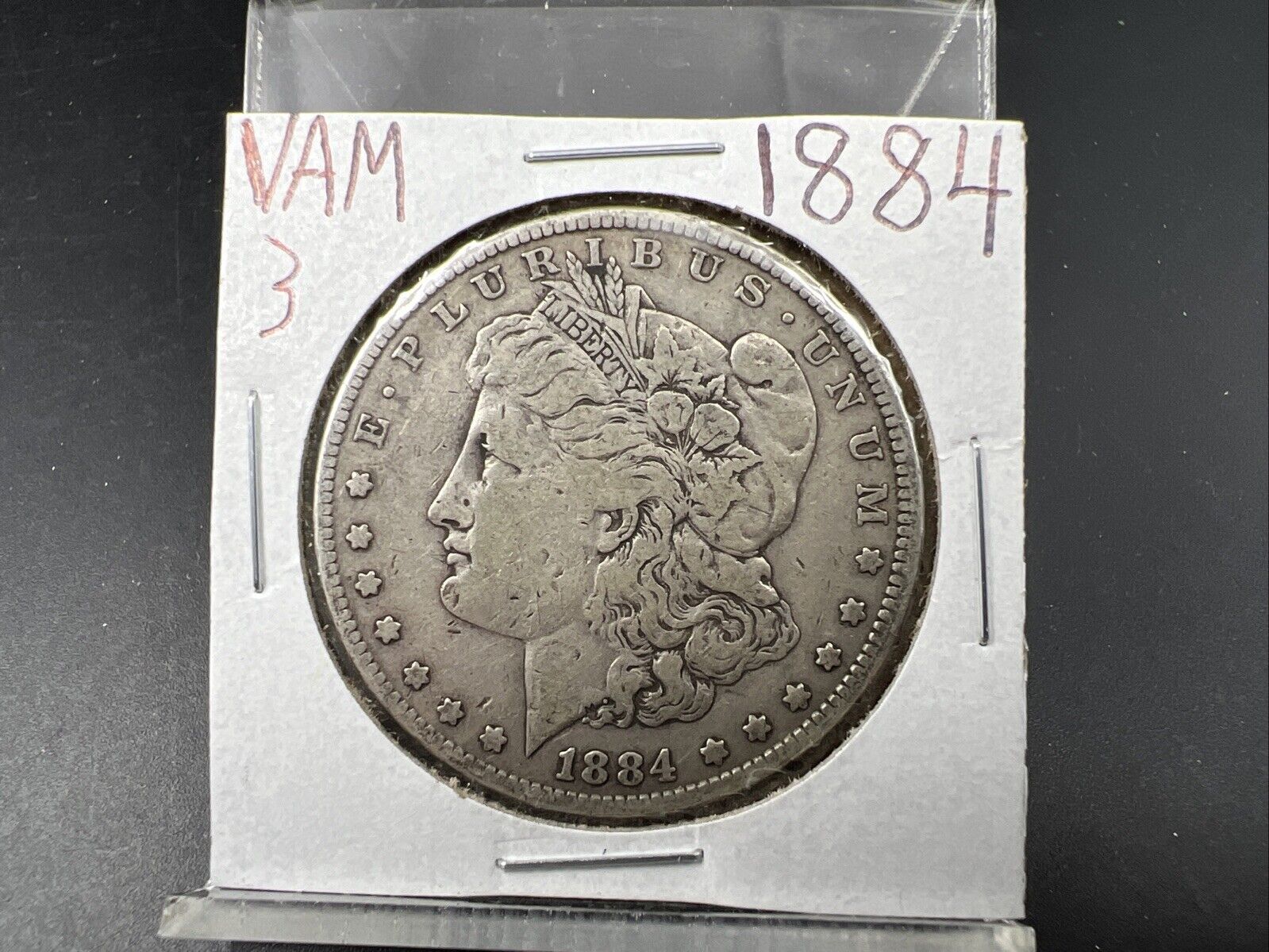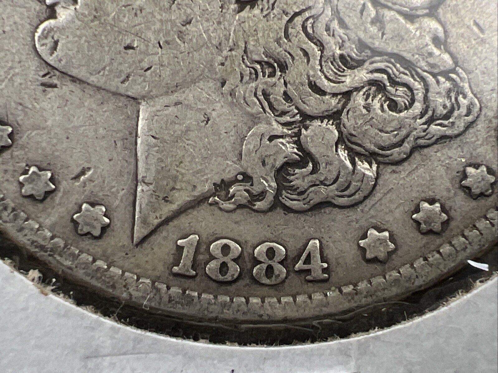 1884 P $1 Morgan Dollar Coin Vam 4 Variety Large Dot Die Chip by Initials VF