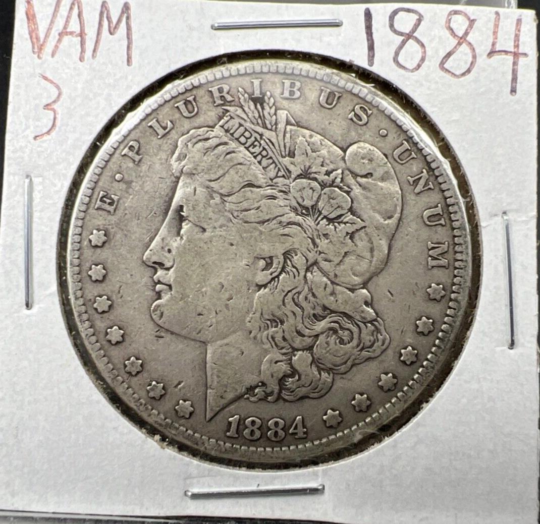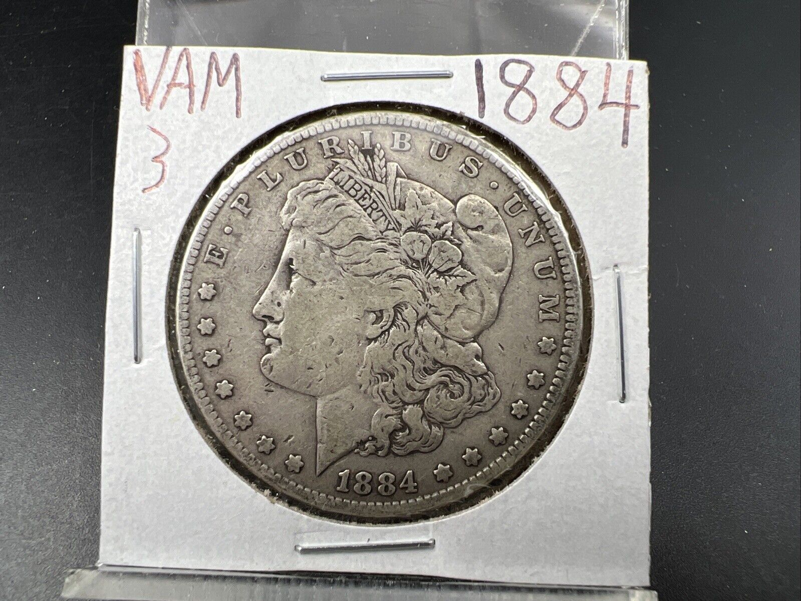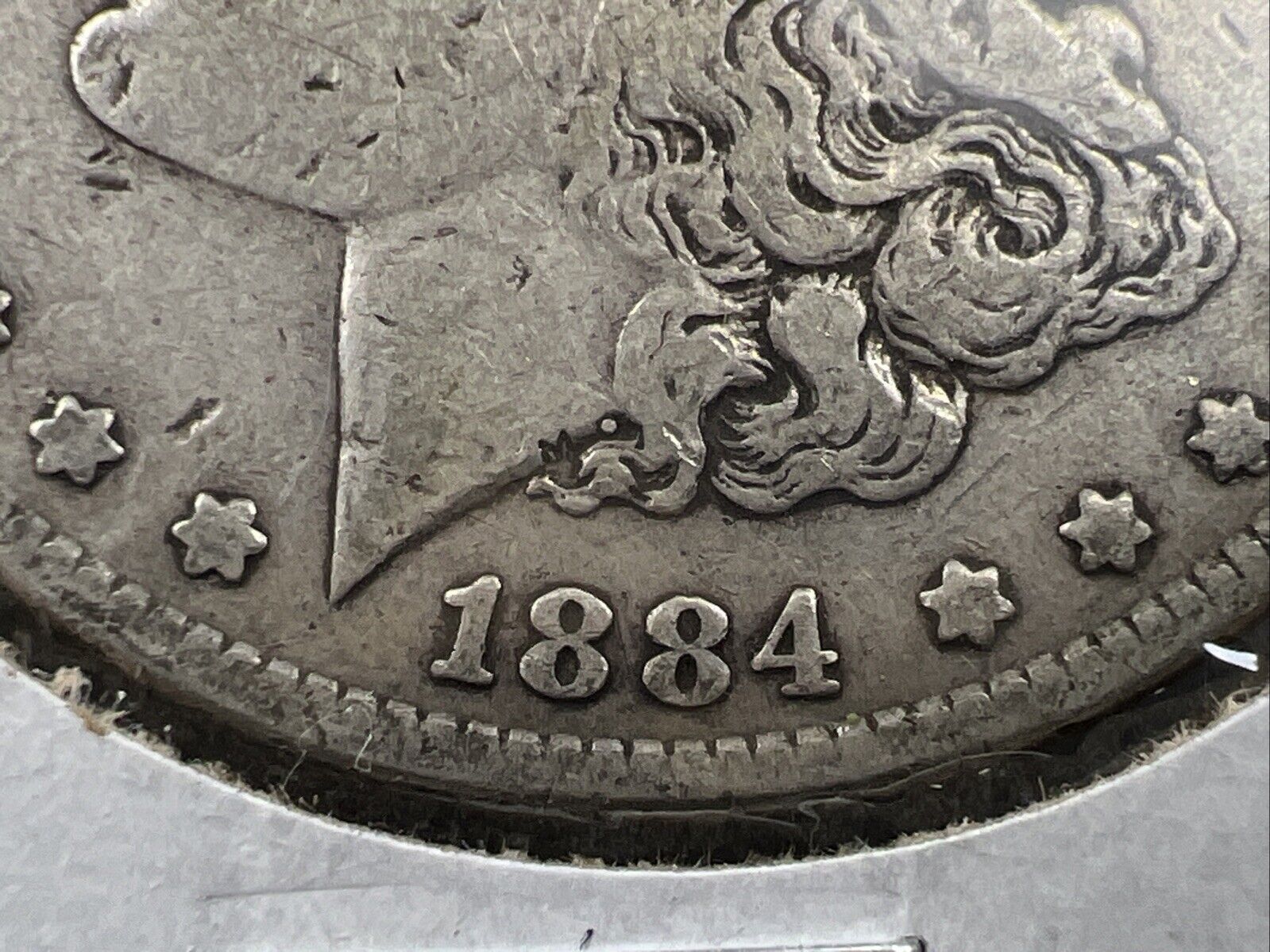 1884 P $1 Morgan Dollar Coin Vam 4 Variety Large Dot Die Chip by Initials VF