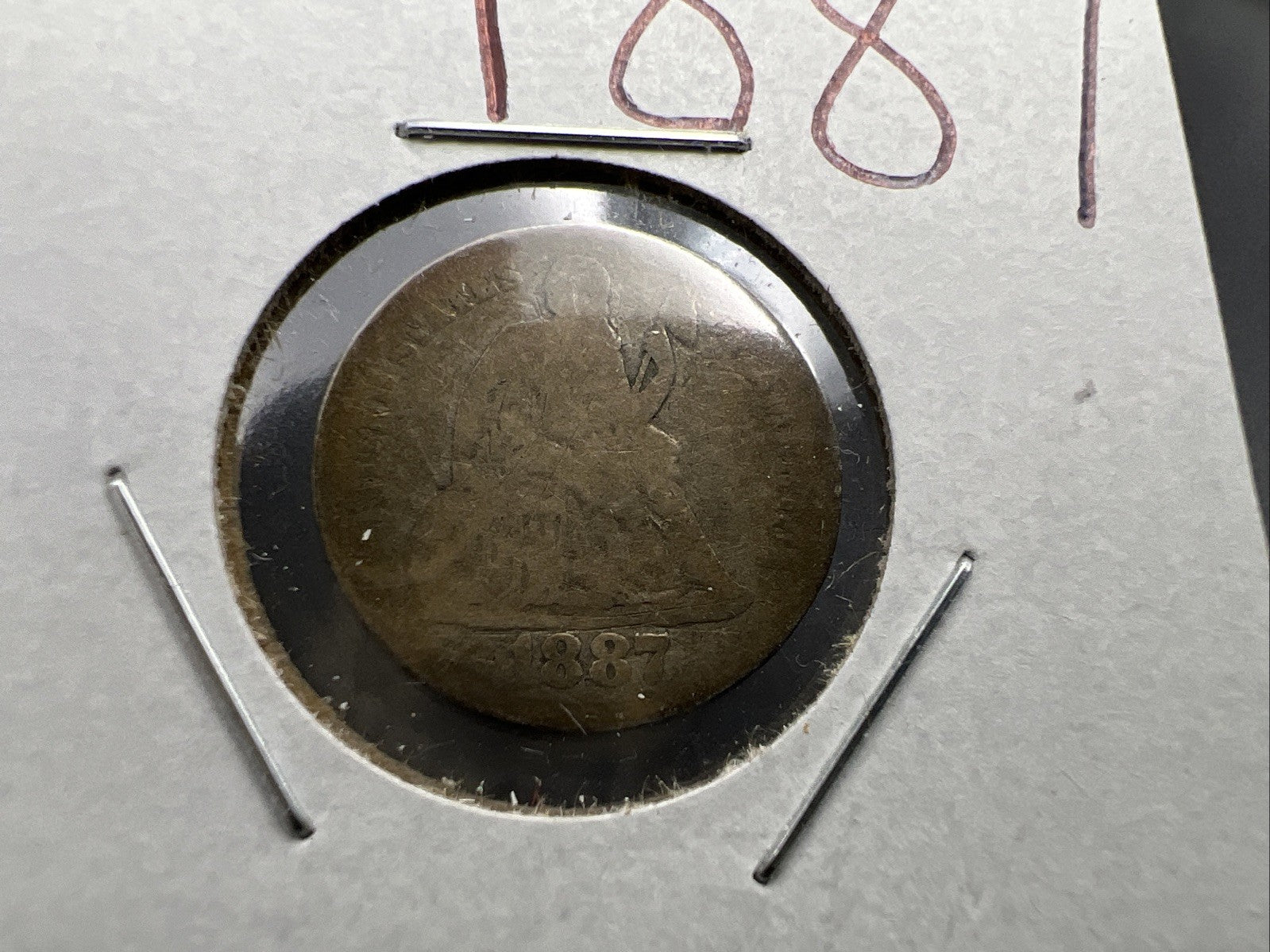 1887 10c Liberty Seated Silver Dime Coin Very Circulated SKU#A