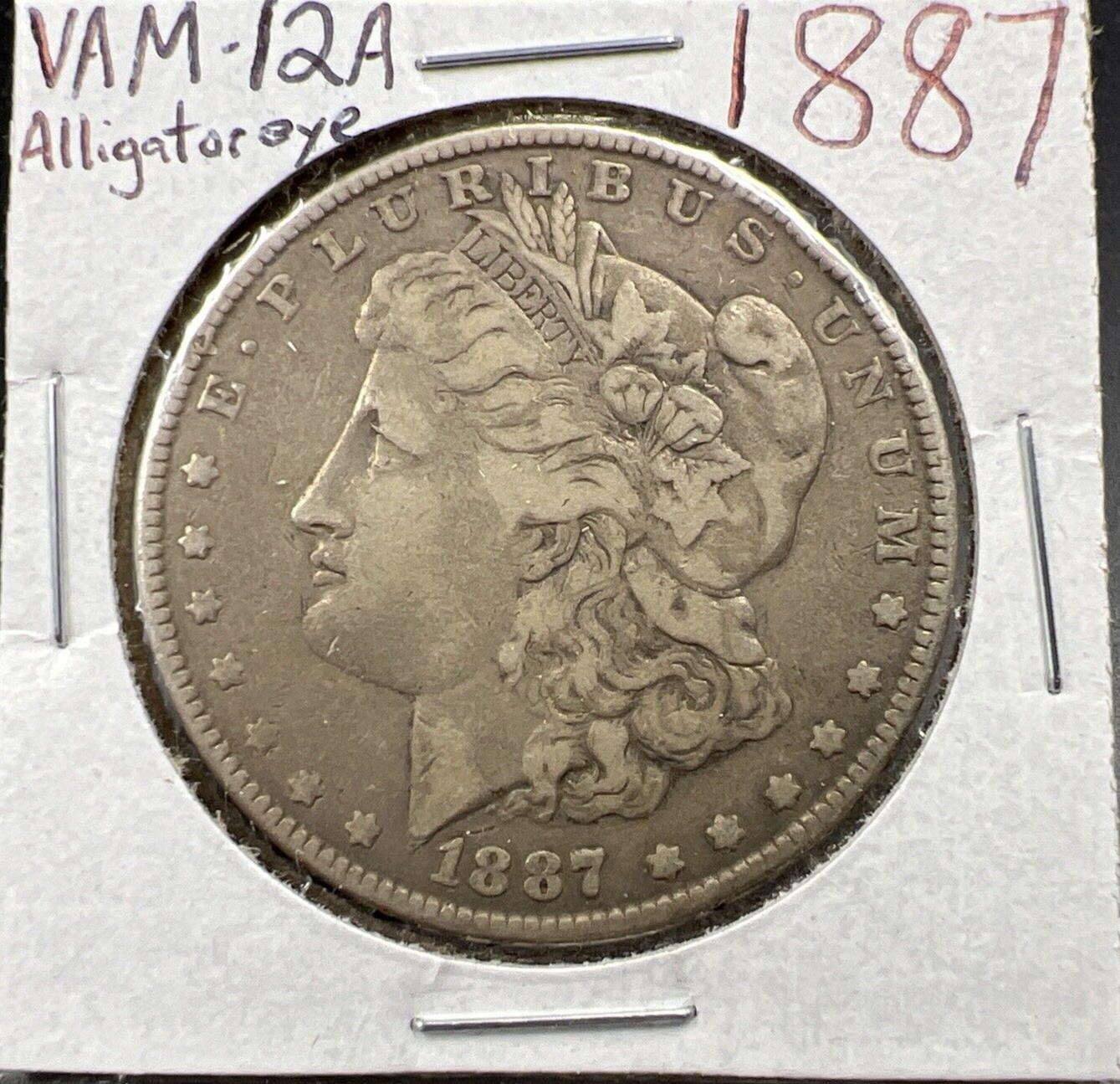 1887 P $1 Morgan Silver Dollar Coin VAM 12A Alligator Eye & Clash Variety Fine