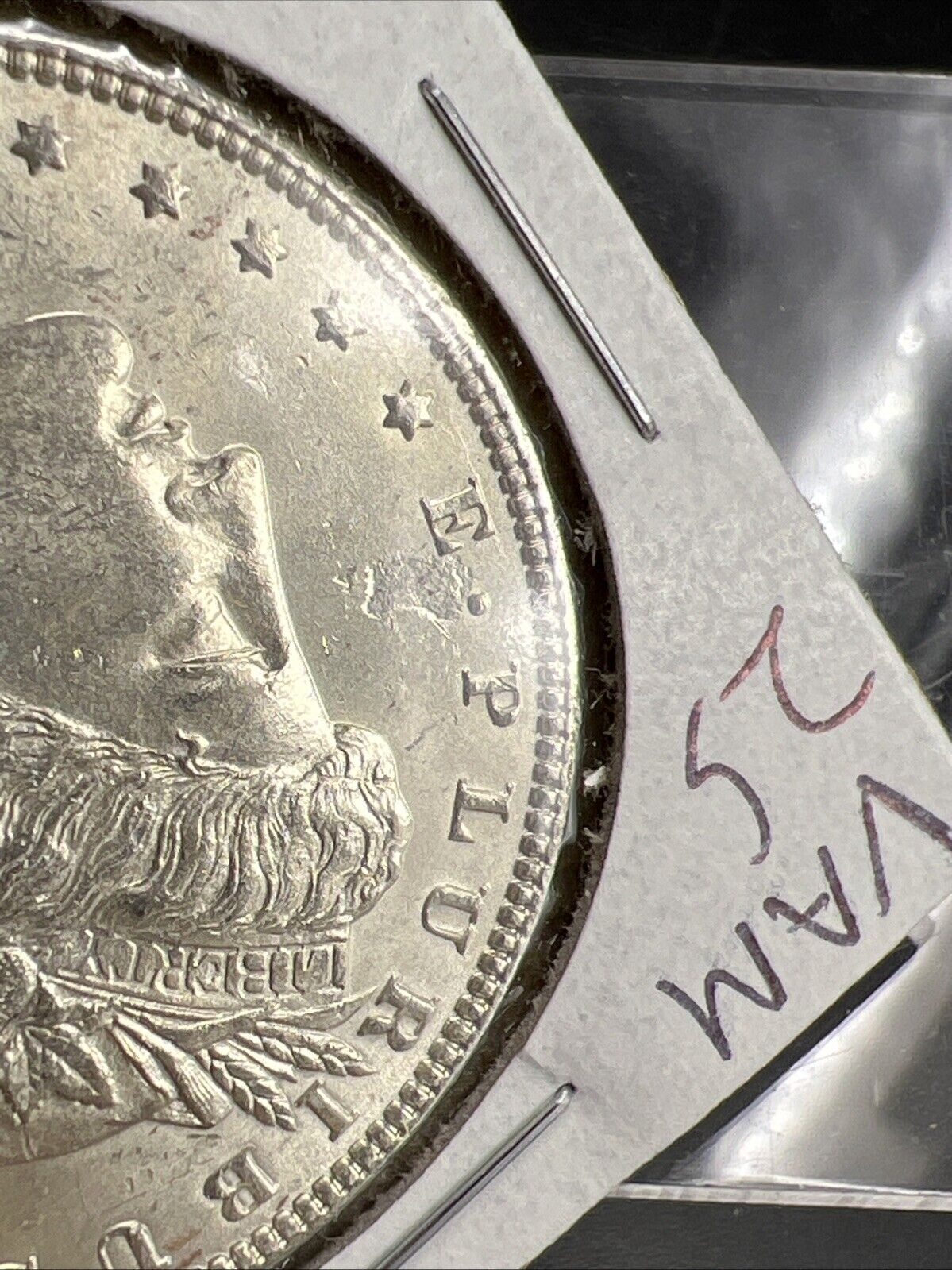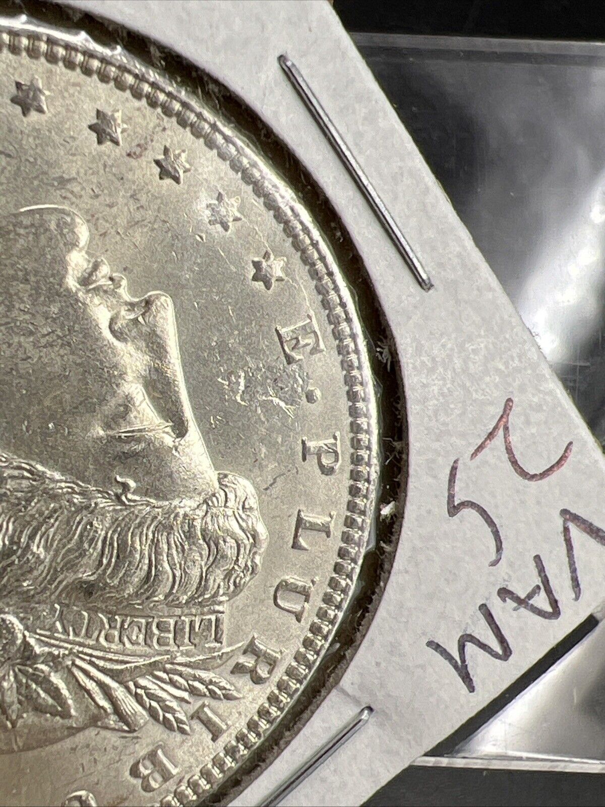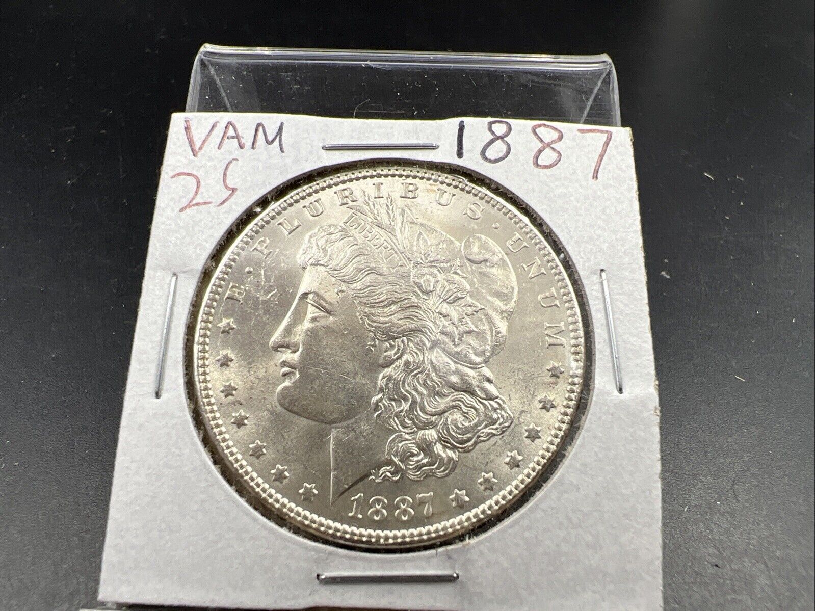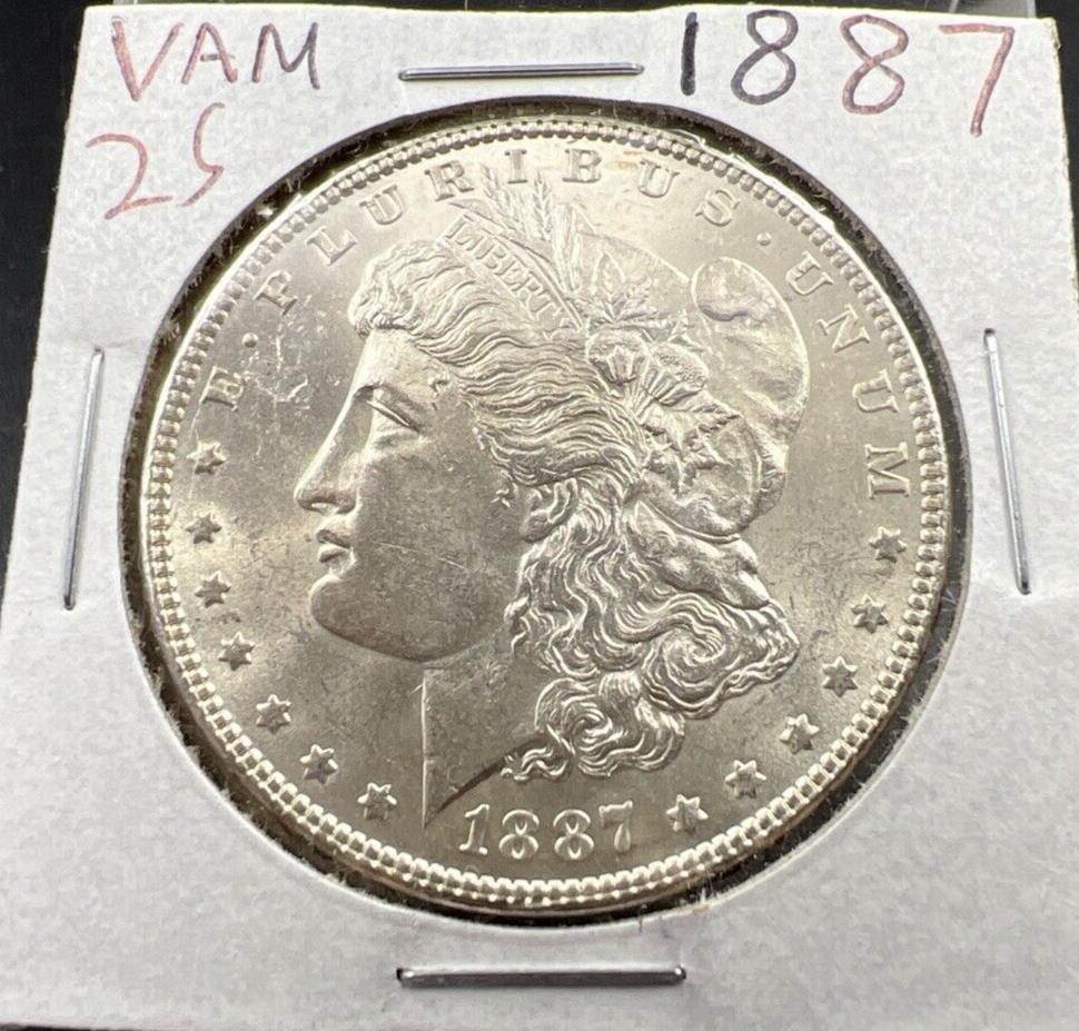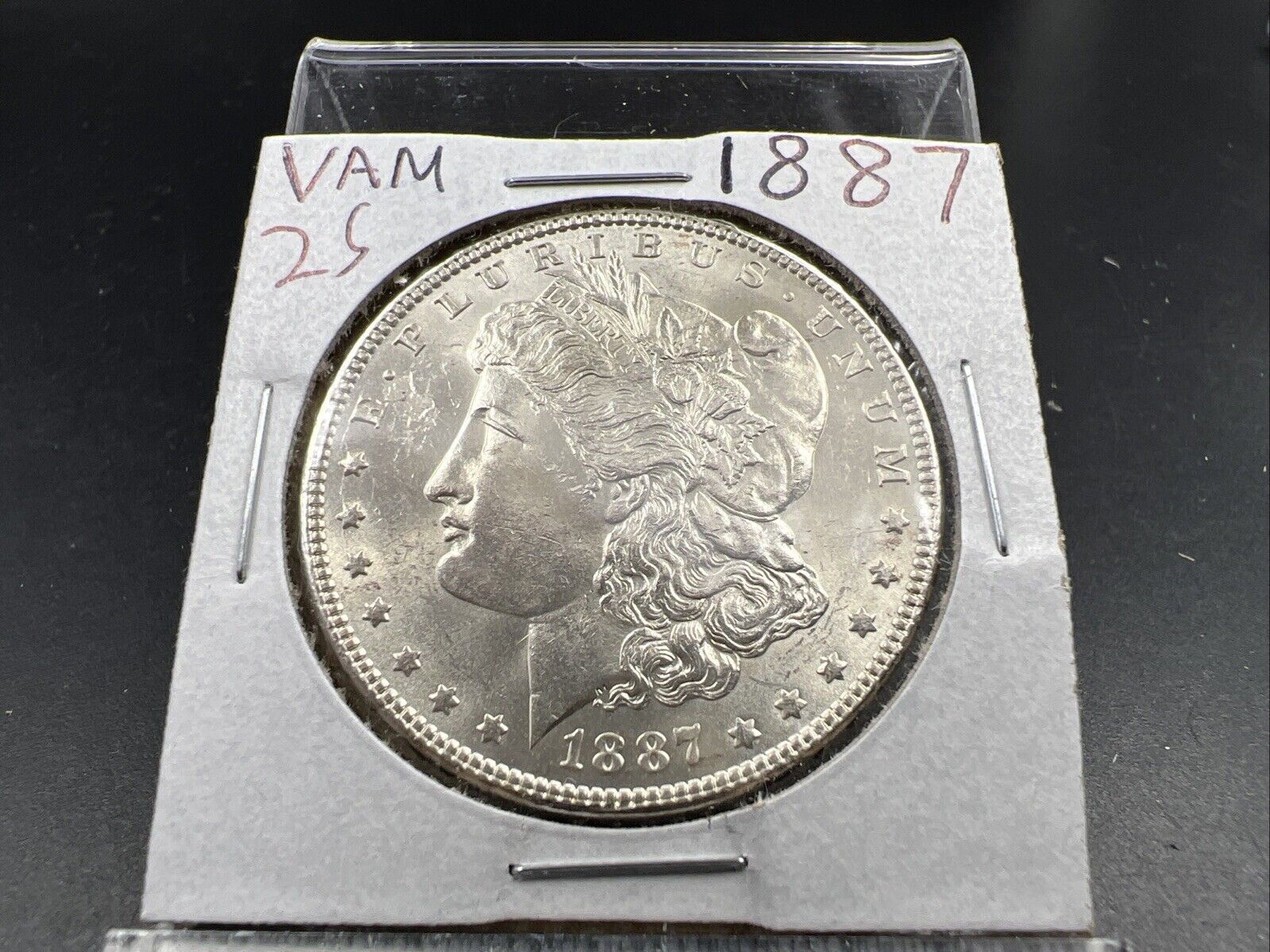 1887 P Morgan Dollar Coin VAM 25 DDO & Strike Through Error OBV CH BU UNC