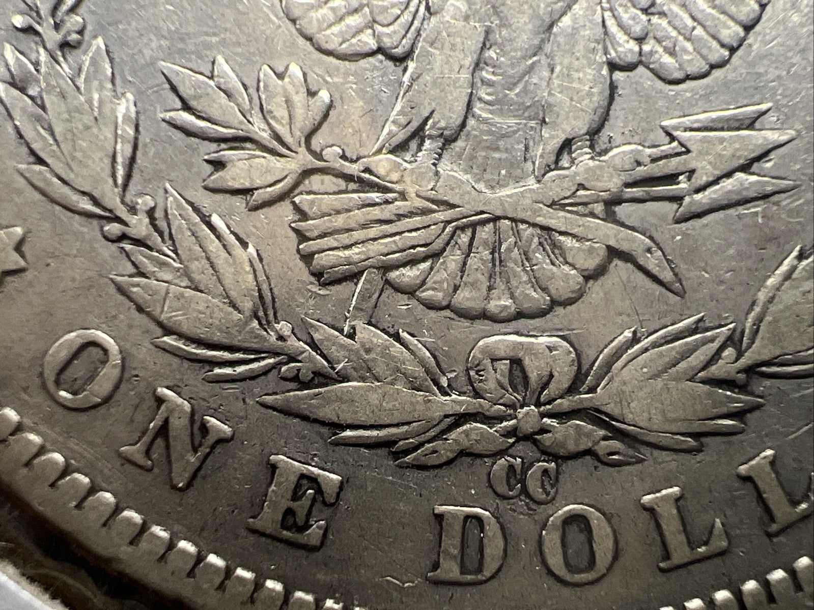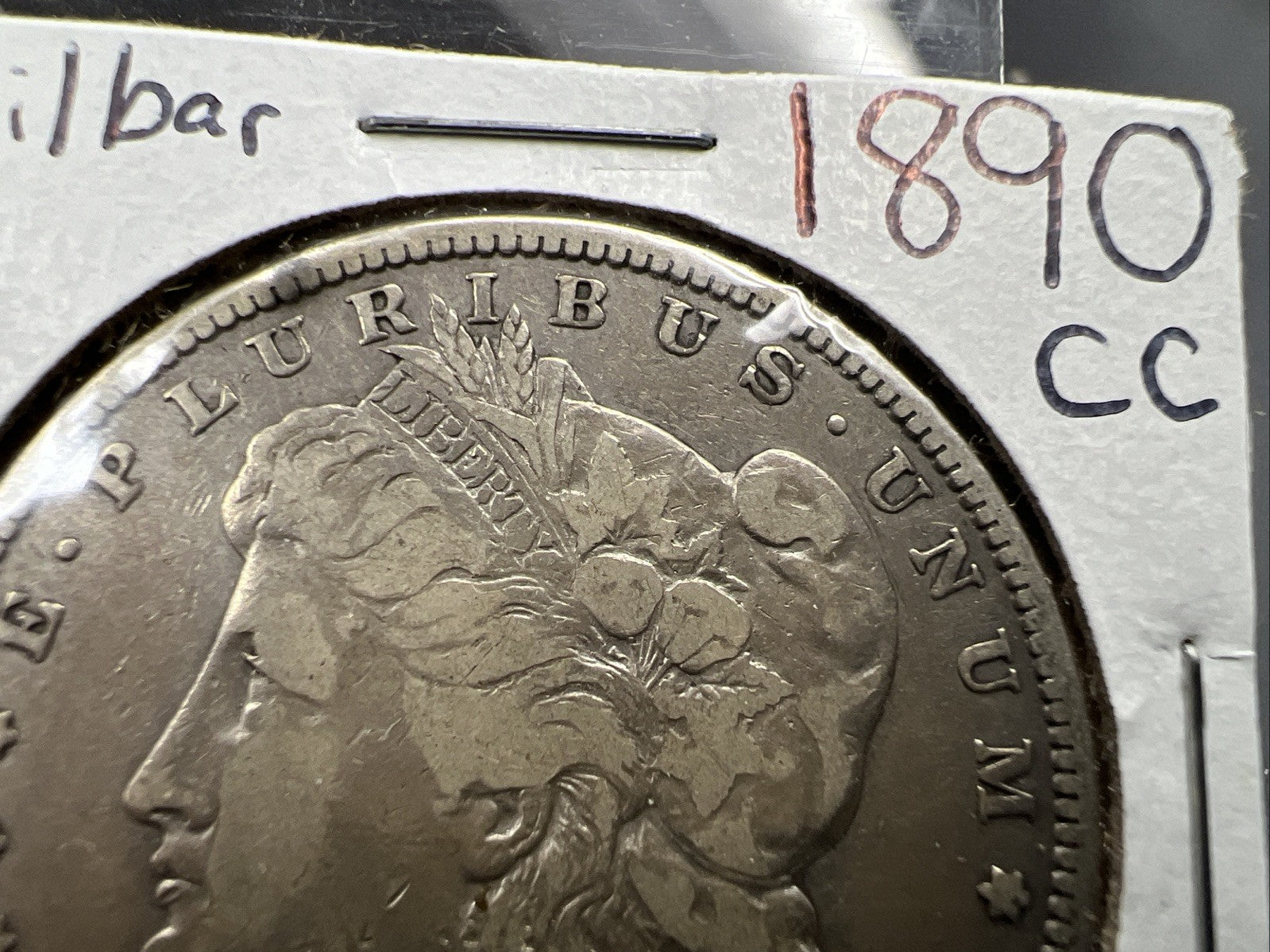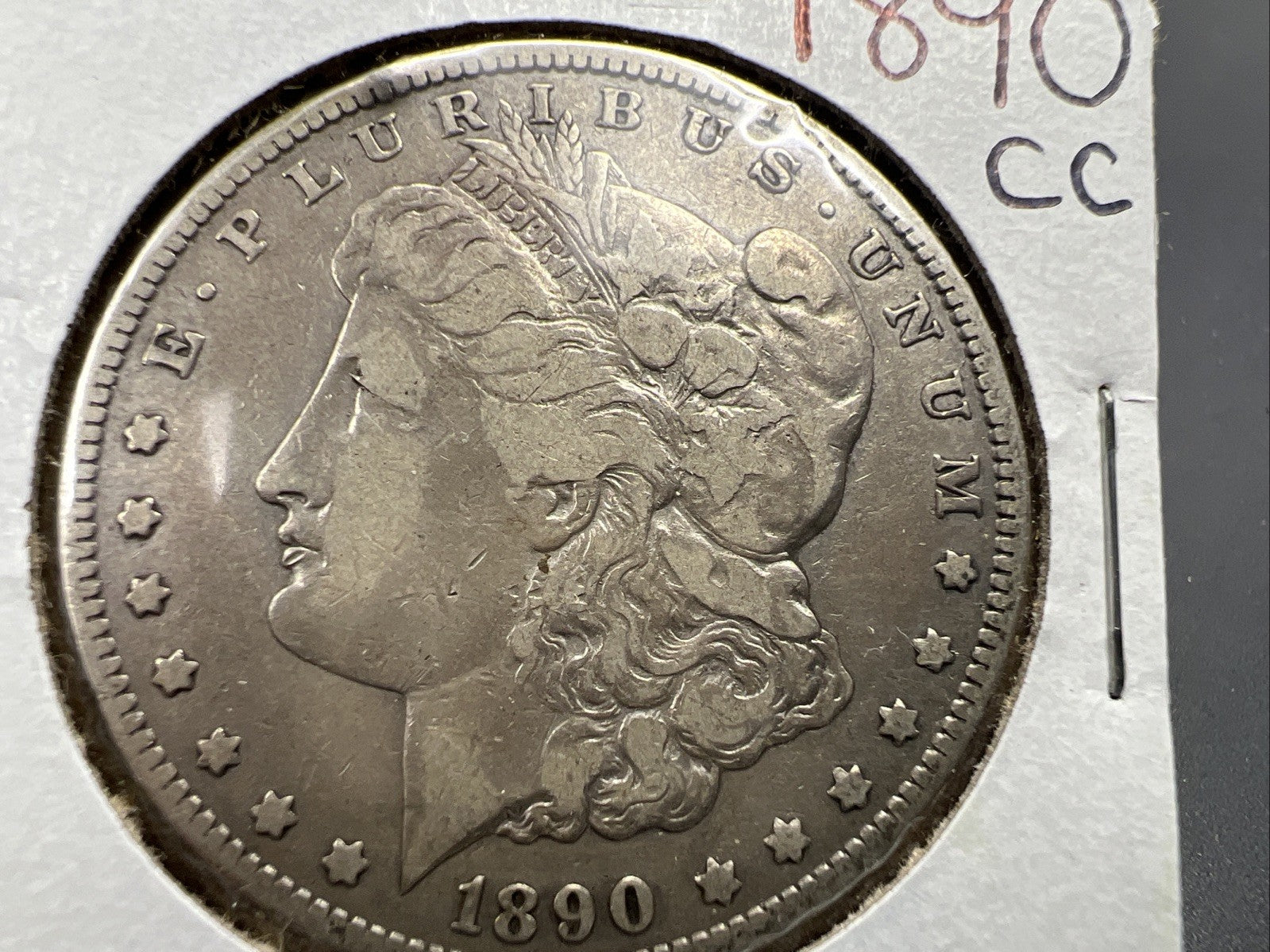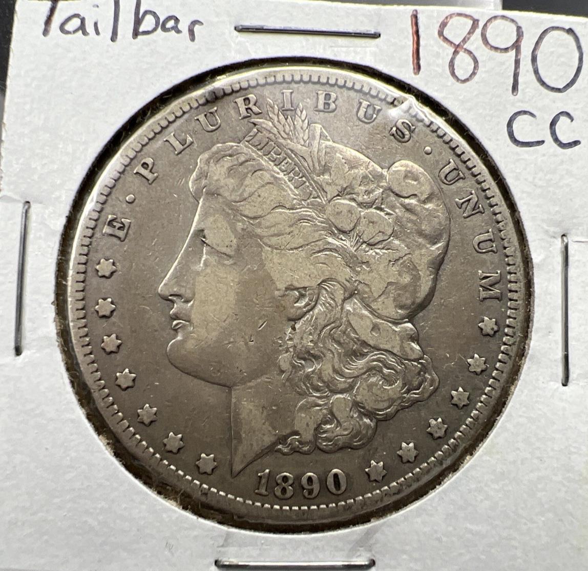 1890 CC $1 Morgan Silver Dollar Coin Tailbar Variety VF Very Fine Circulated