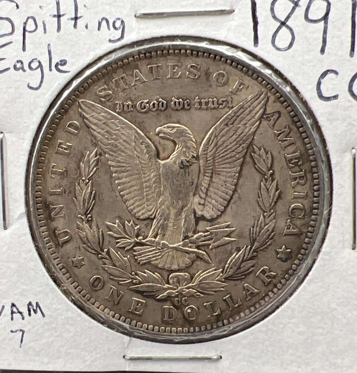 1891 CC $1 Morgan Dollar Coin Choice VF Very Fine Vam 7 Spitting Eagle Variety