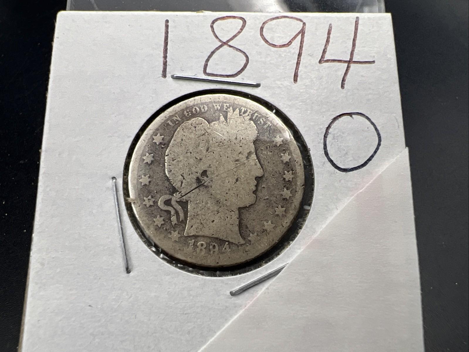 1894 O 25c Barber Silver Quarter Coin Very Circulated AG SK#A