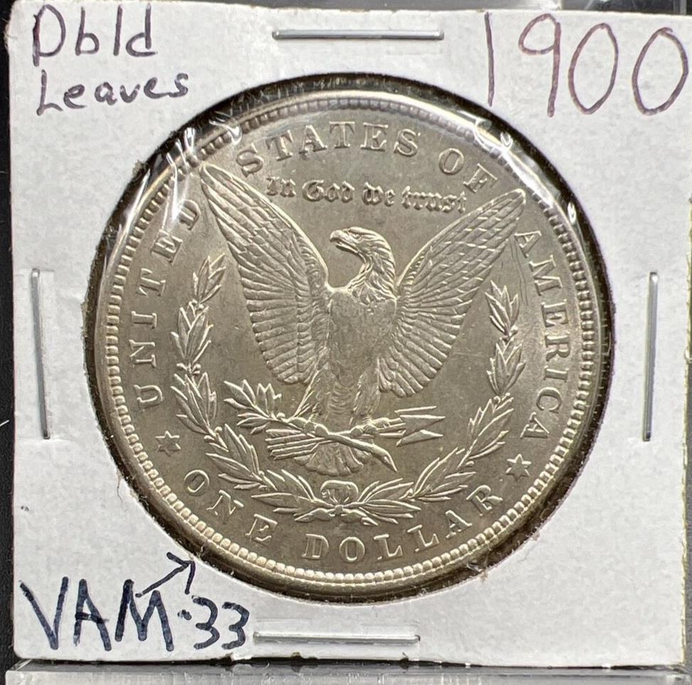 1900 P Morgan Silver Dollar Coin VAM 33 Variety DDR Reverse Leaves Choice AU