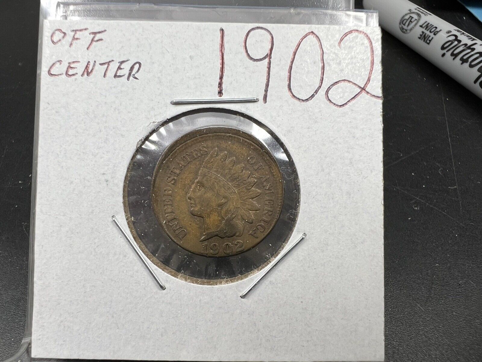 1902 Indian Head Cent Penny Coin XF EF Error Coin 10% Off Center