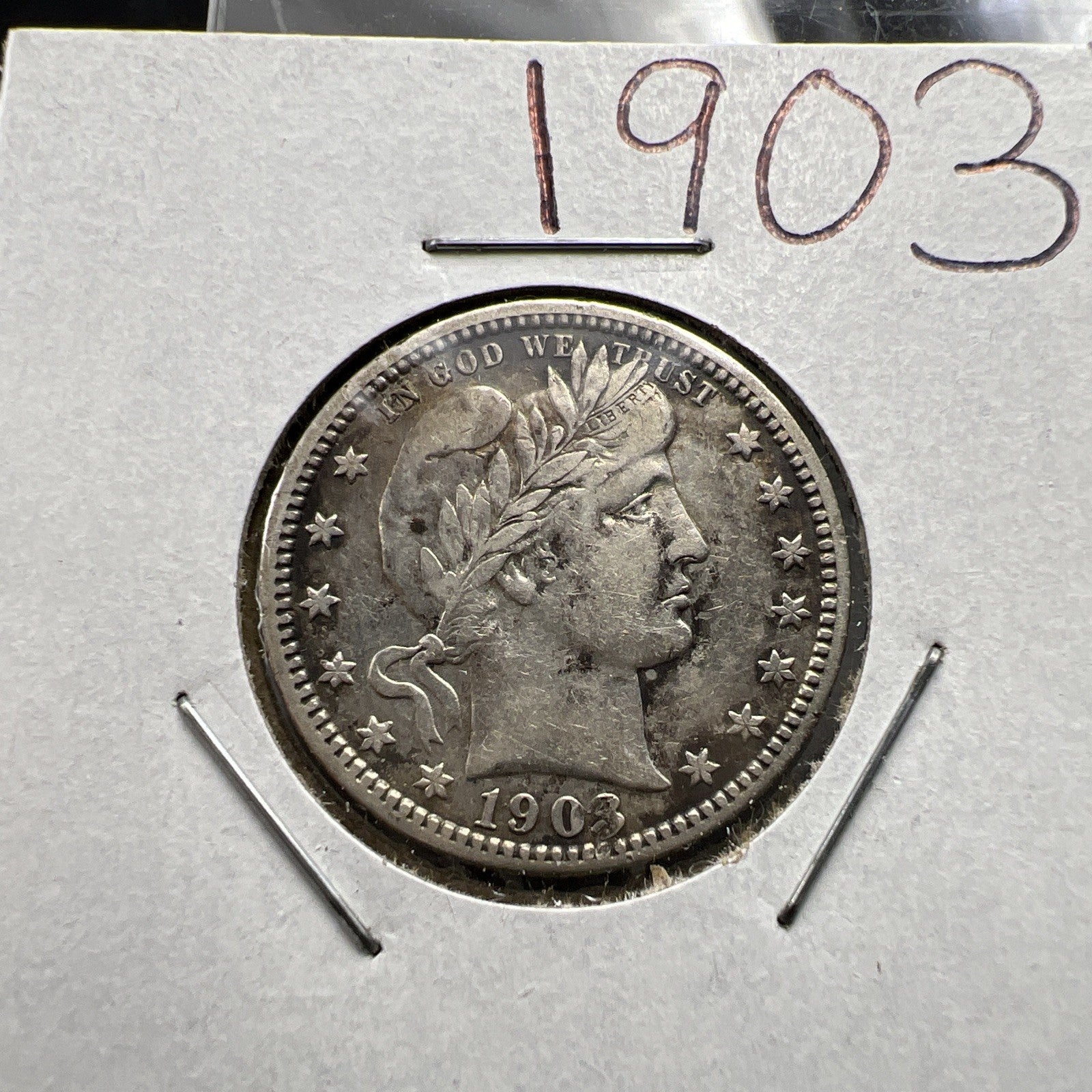 1903 P Barber Silver Quarter Coin Choice VF Very Fine Circ