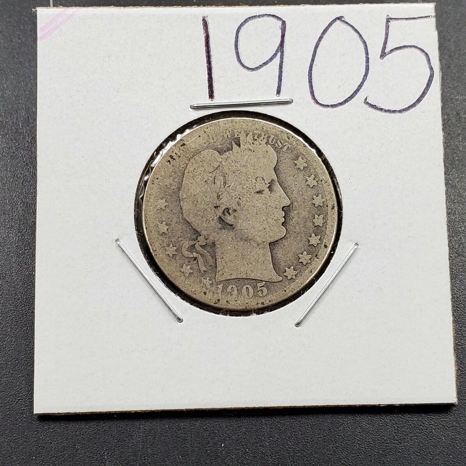 1905 P Barber Silver Quarter Coin About Good Circ Semi Key Date
