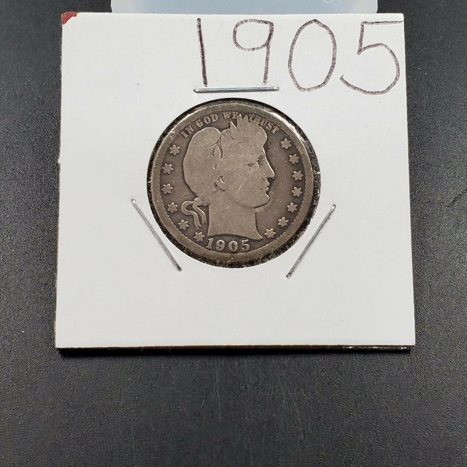 1905 P Barber Silver Quarter Coin Choice VG VERY GOOD Semi Key Date Circulated