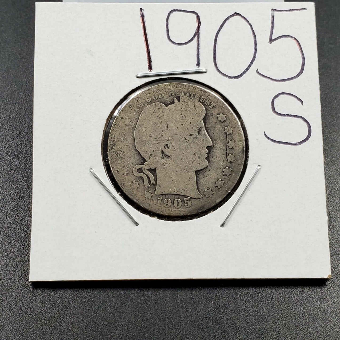 1905 S Barber Silver Quarter Coin Choice AG / G Good Full Date Semi Key Date