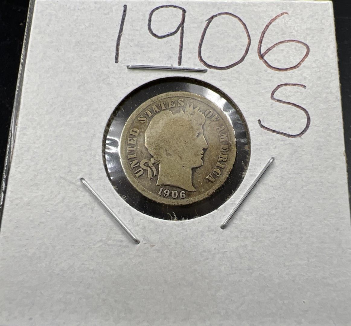 1906 S Barber 90% Silver Dime Coin CH AG / Good Circulated SKU#A