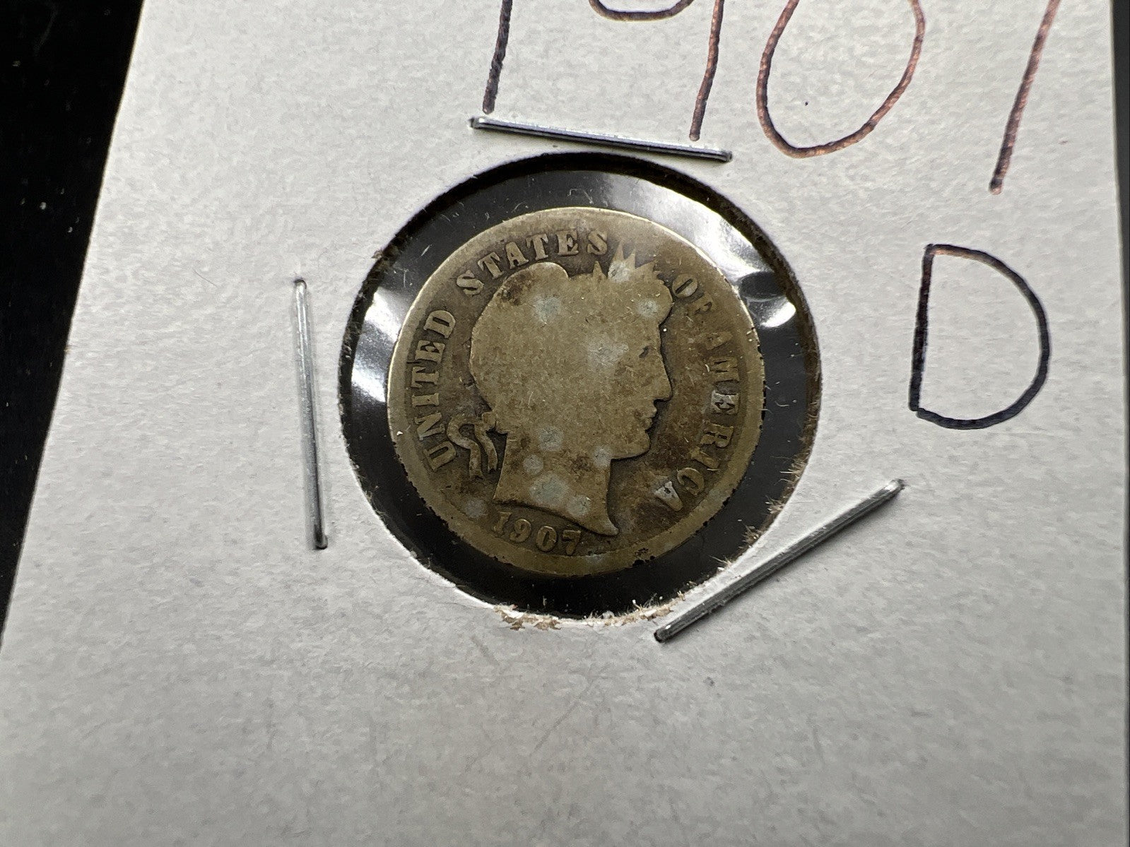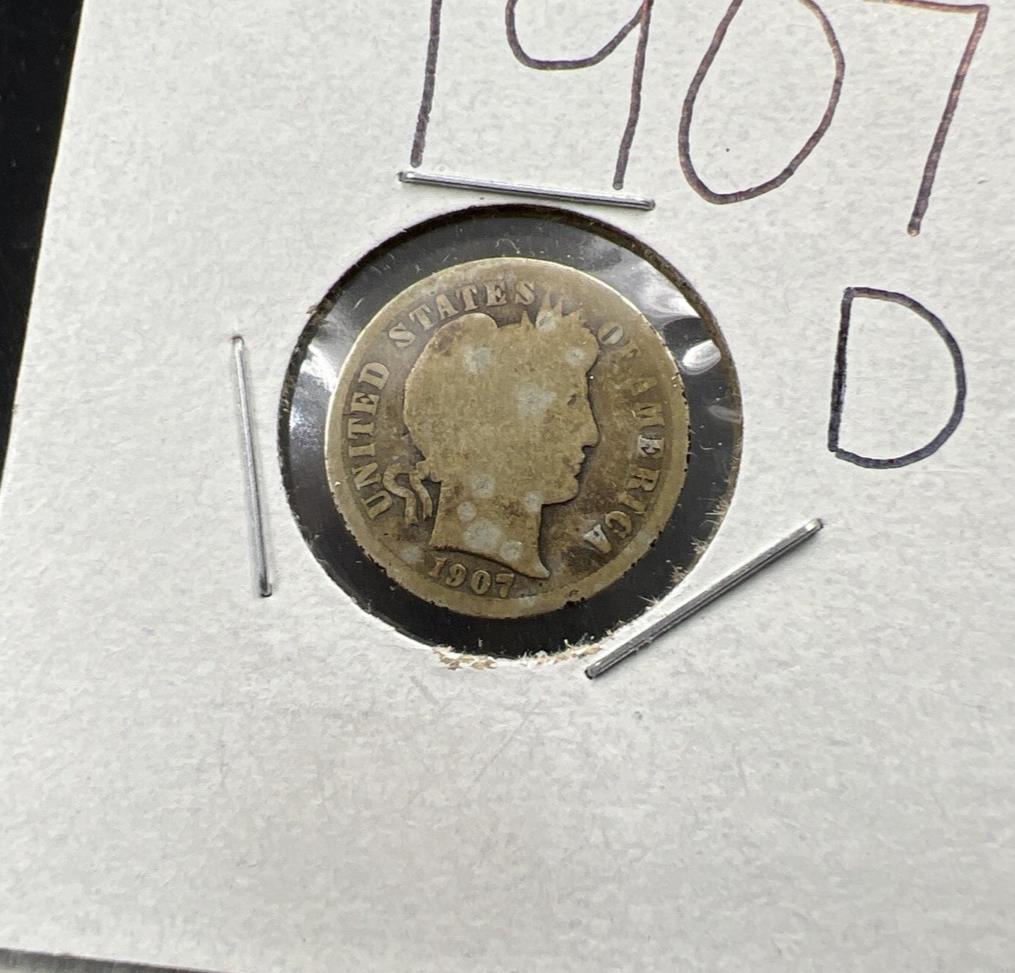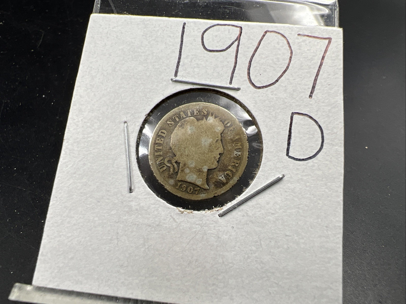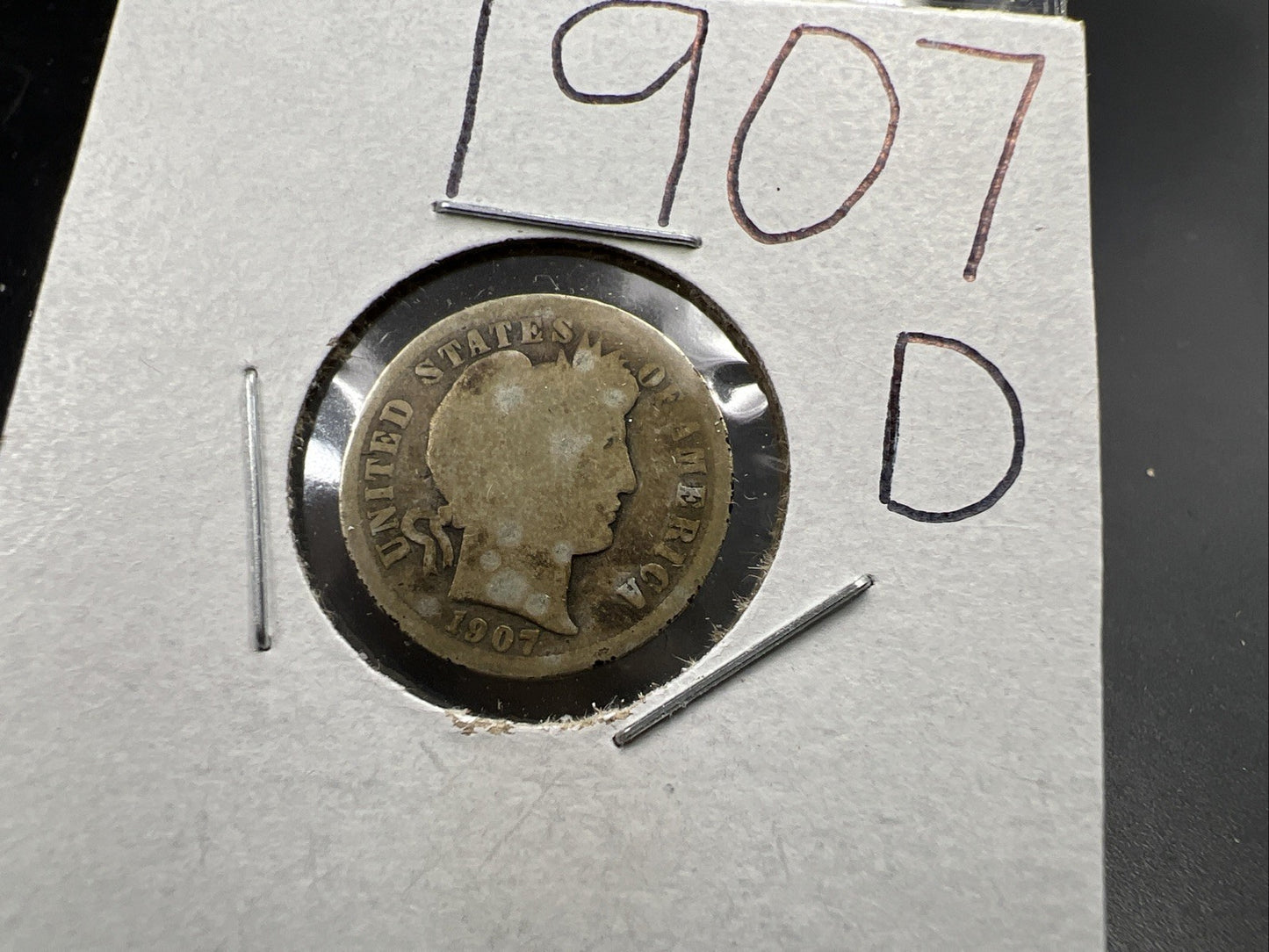 1907 D Barber 90% Silver Dime Coin AG About Good Very Circulated SKU#A
