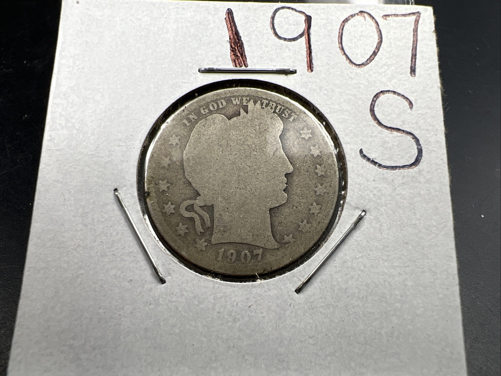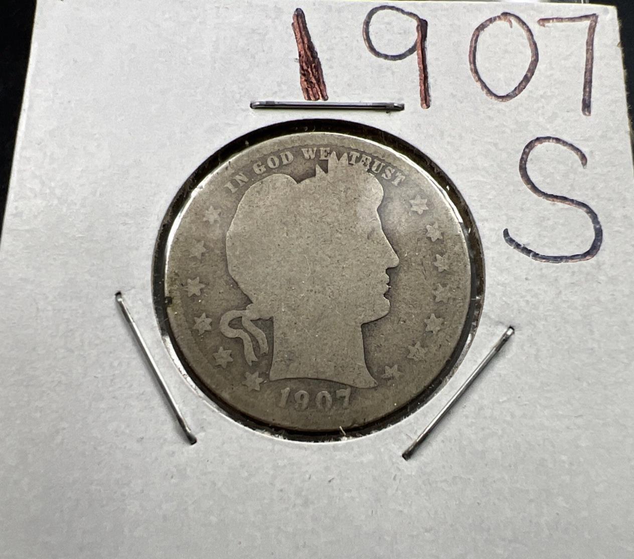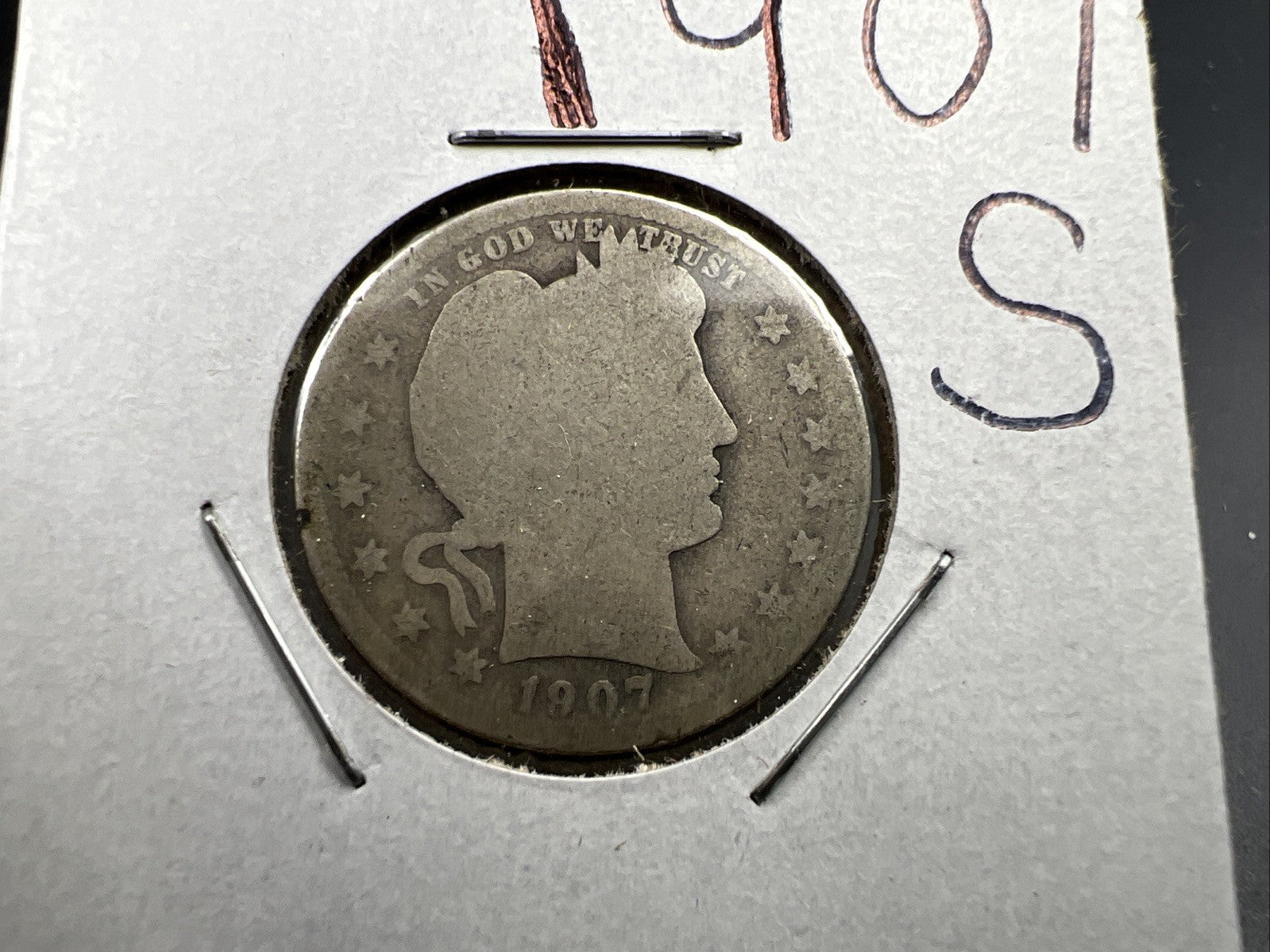 1907 S 25c Barber Silver Quarter Coin AG About Good Circ SKU#A