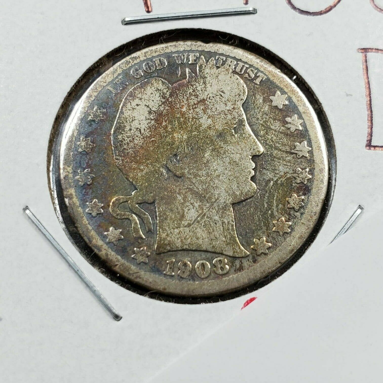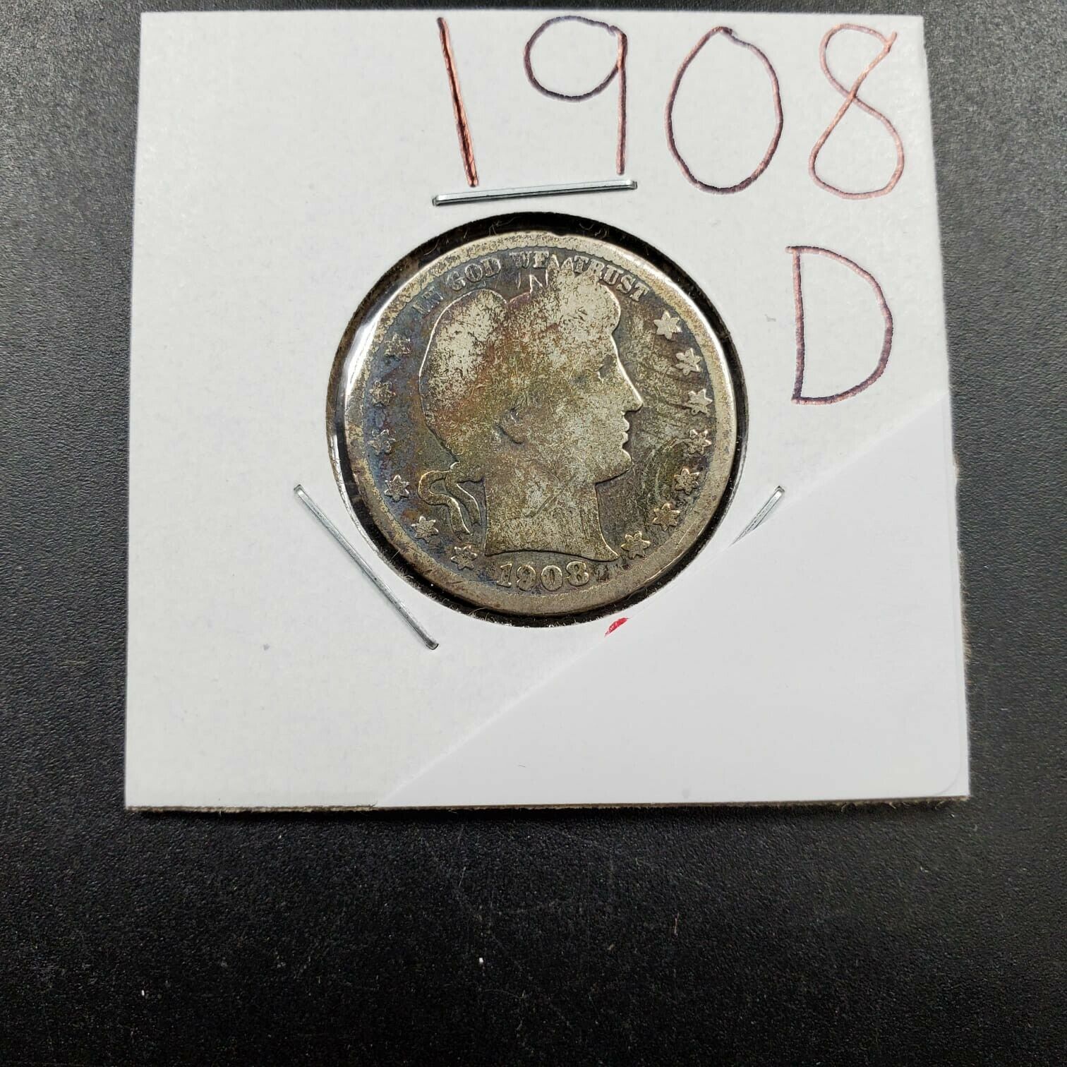 1908 D 25C Barber Silver Quarter Coin Choice AG / GOOD Circulated NEAT TONING