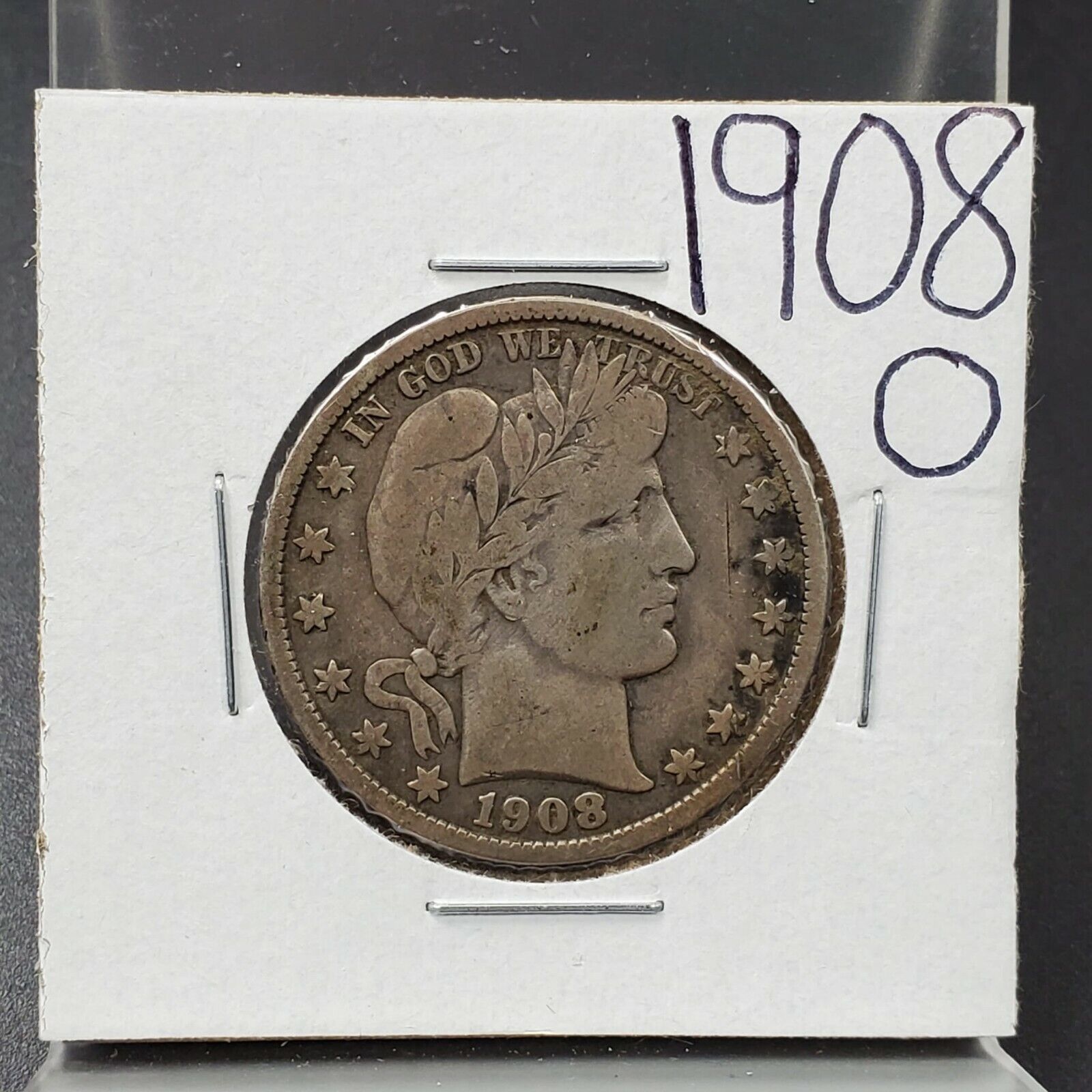1908 O Barber Silver Eagle Half Dollar Coin Average VF Very Fine New Orleans