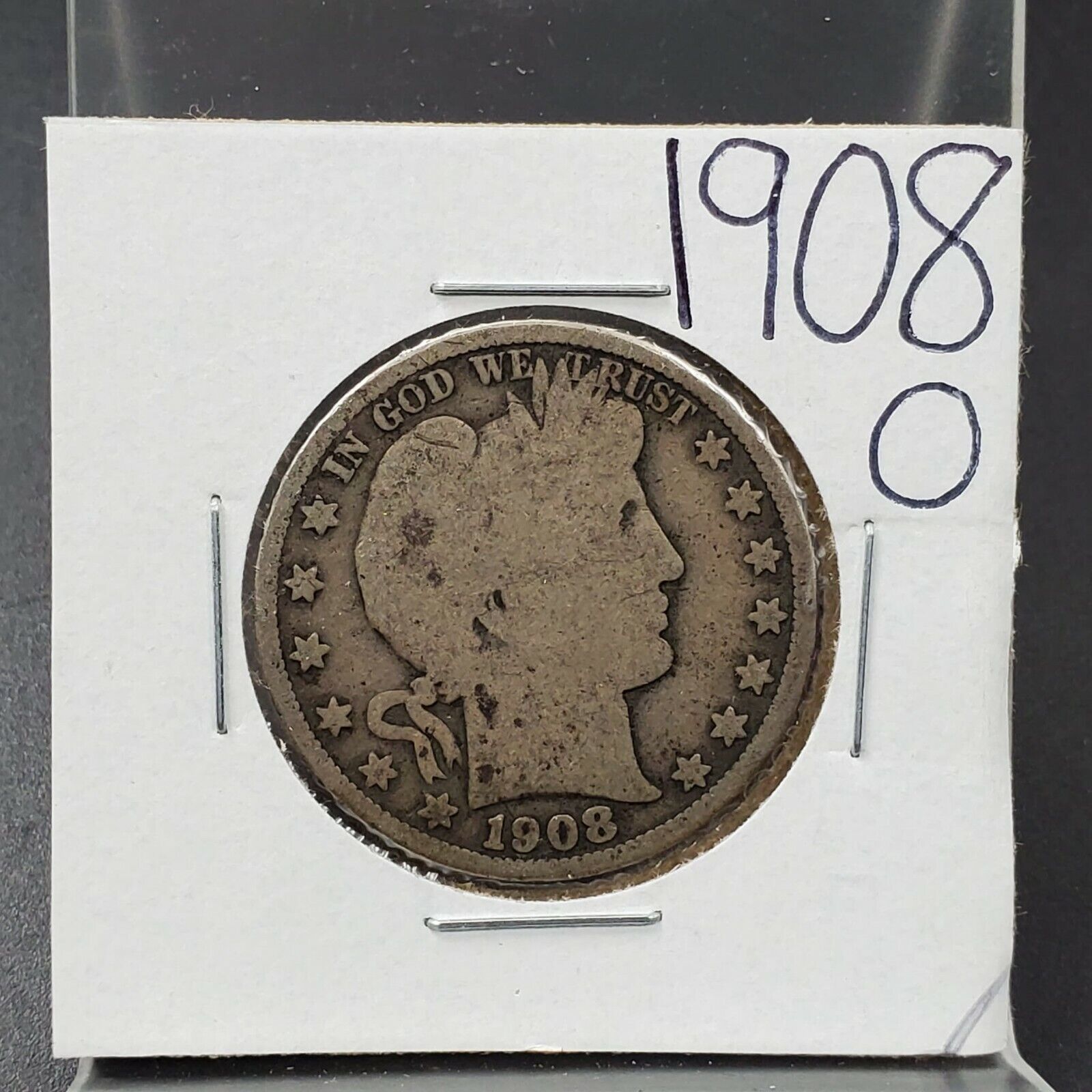 1908 O Barber Silver Half Dollar Coin Choice AG ABOUT Good / Good Full Date