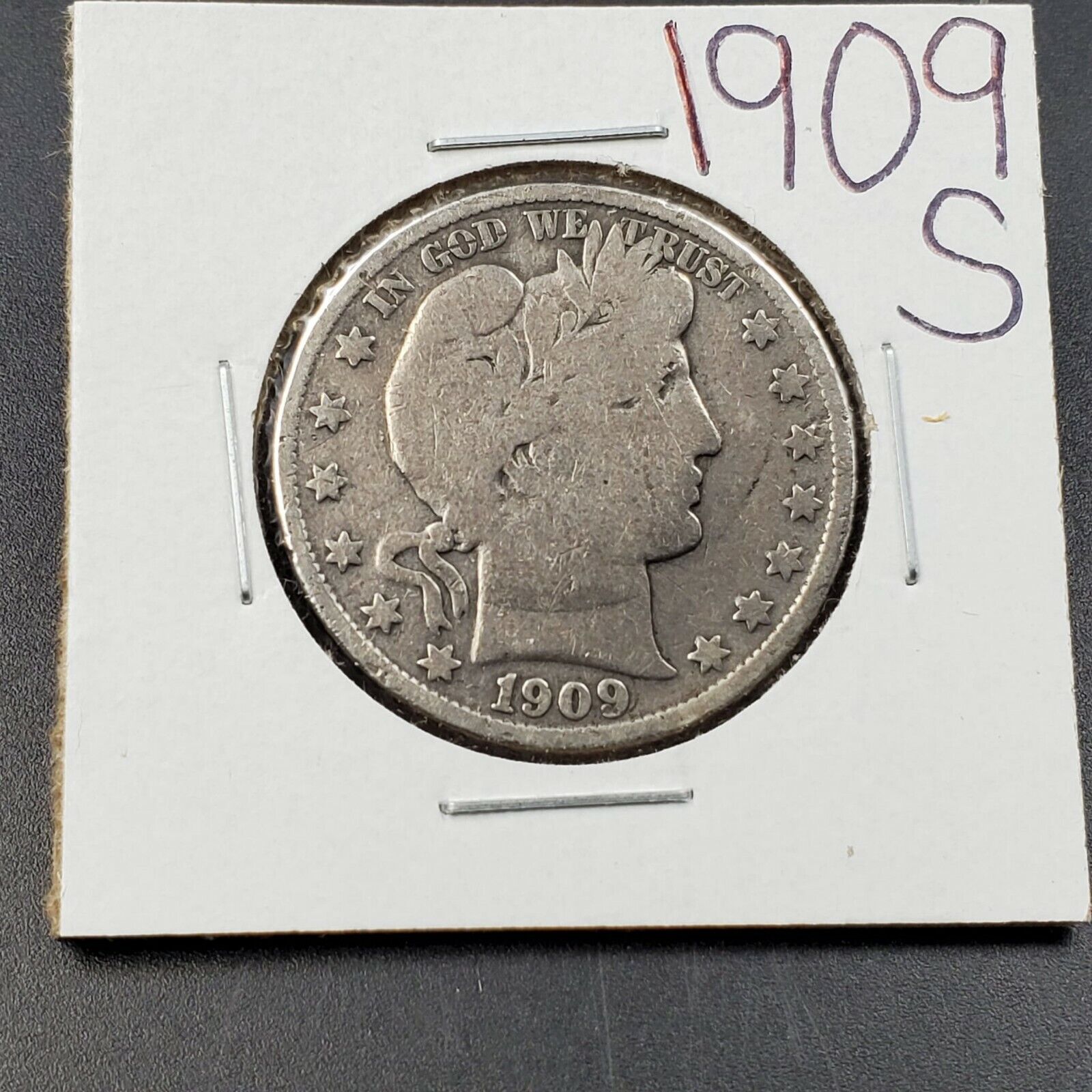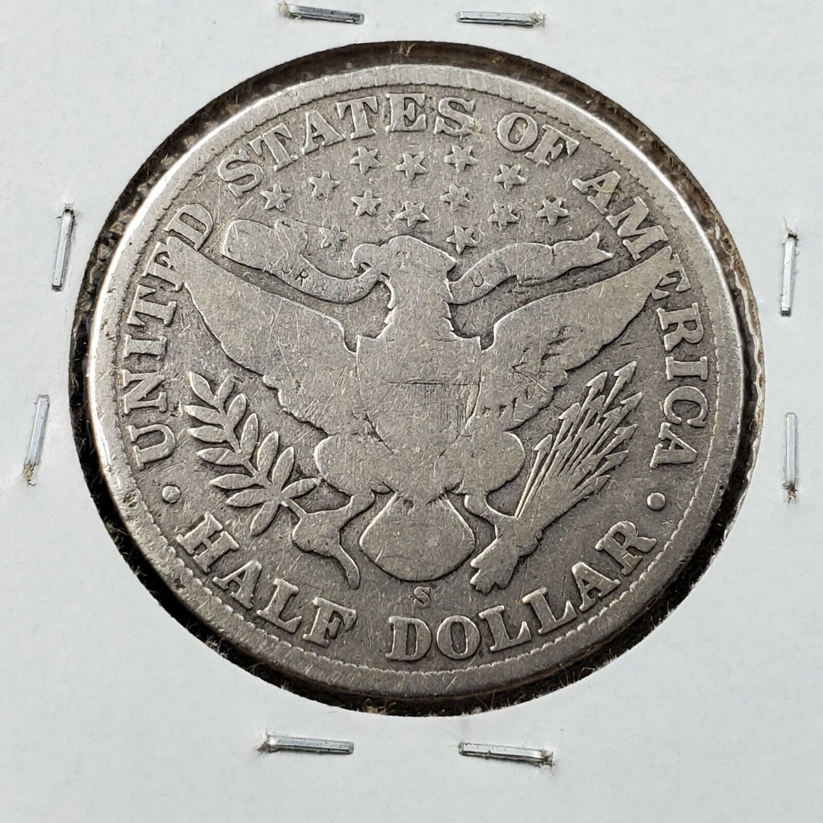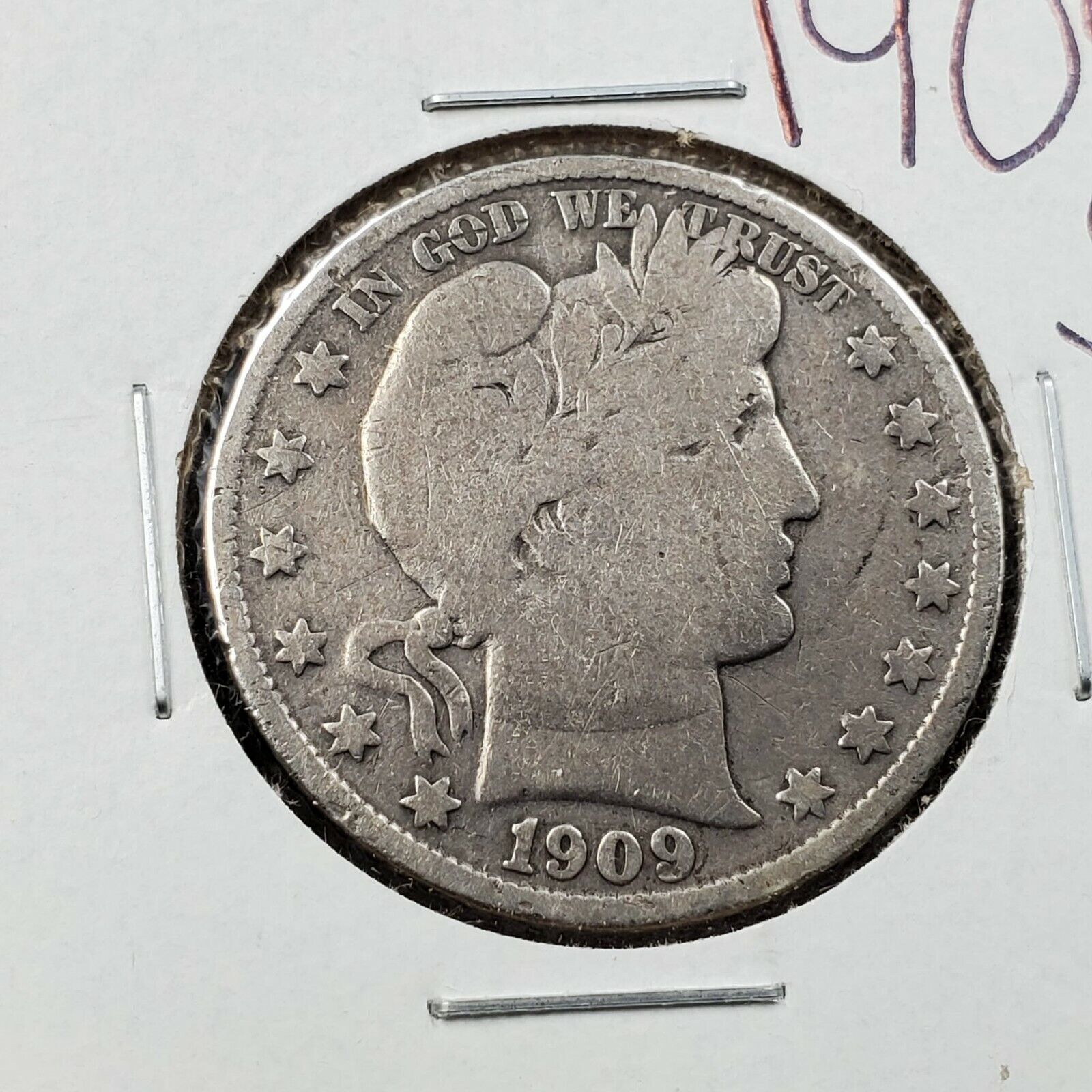 1909 S Barber Silver Eagle Half Dollar Coin Average Fine Circulated