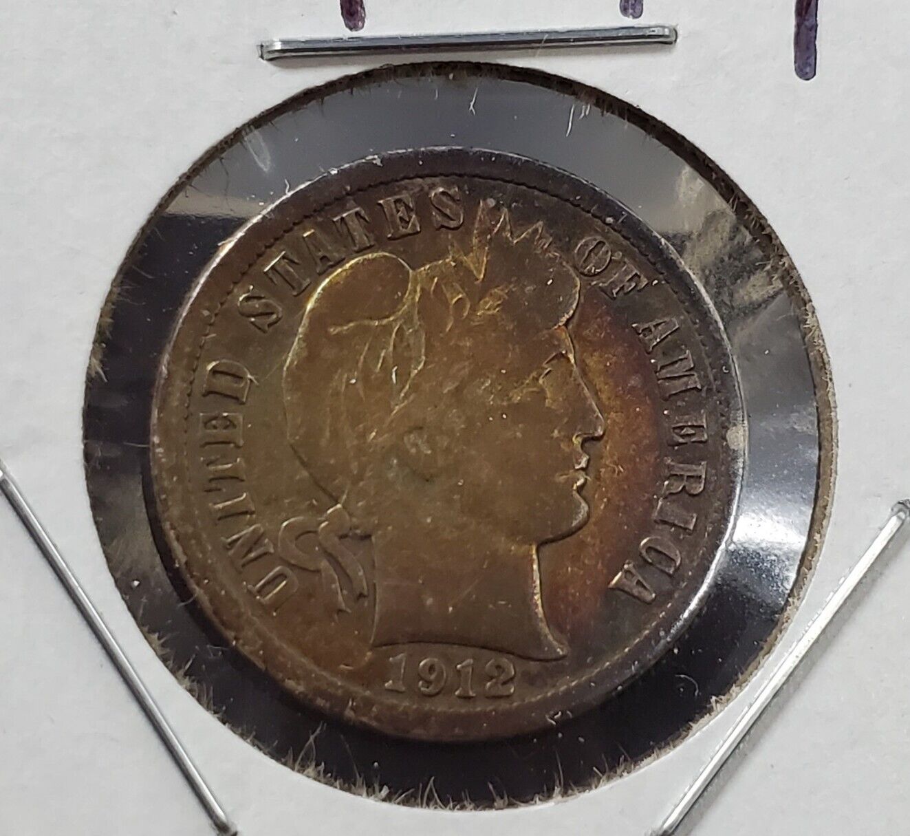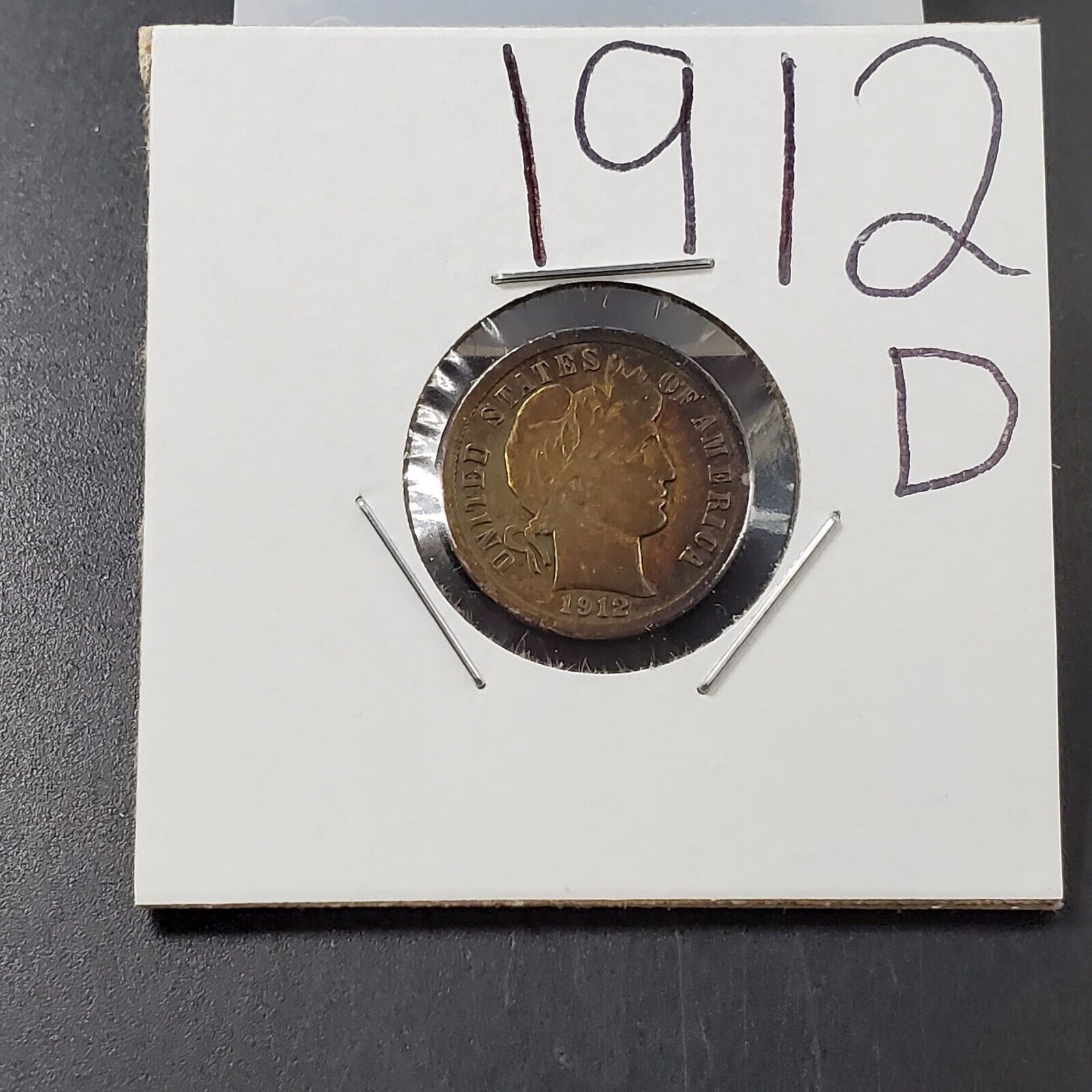 1912 D Barber DIME Silver Coin PQ Circ Toning Fine / VF Toner