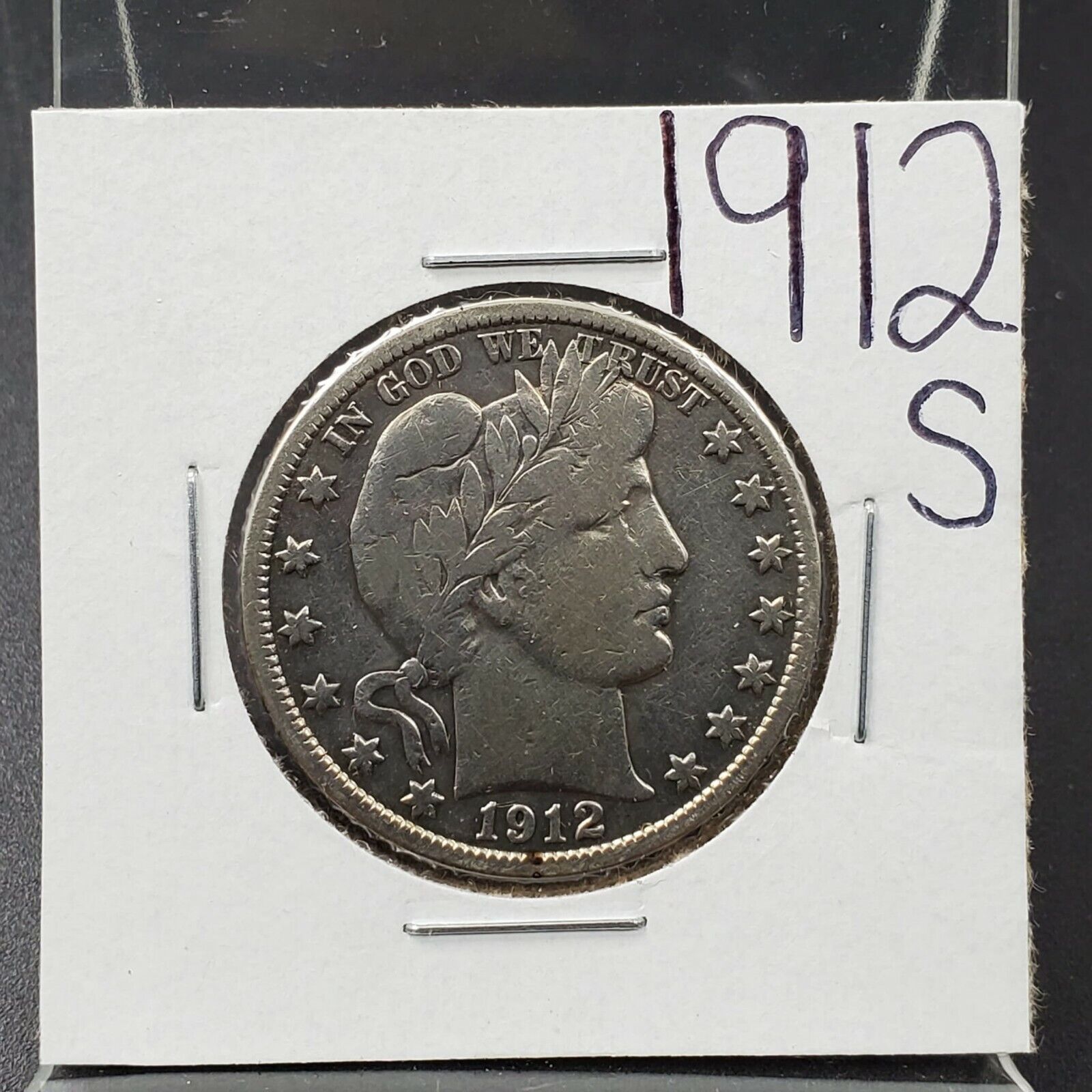 1912 S Barber Silver Eagle Half Dollar Coin Average VF Details Detail grade