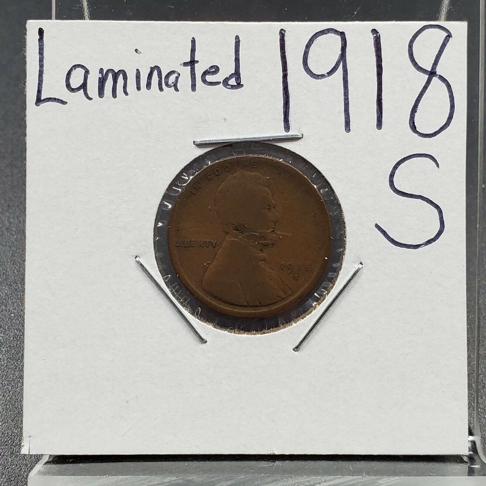 1918 S Lincoln Wheat Cent Penny Coin Laminated Planchet Error Variety Circ