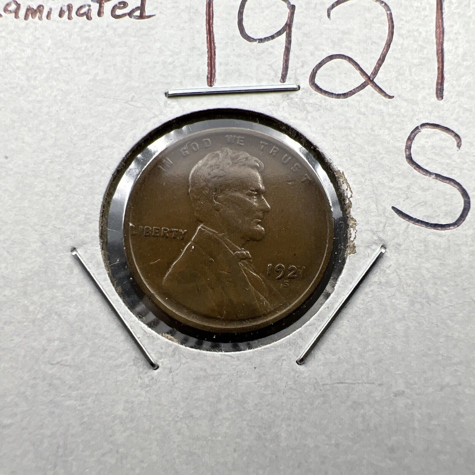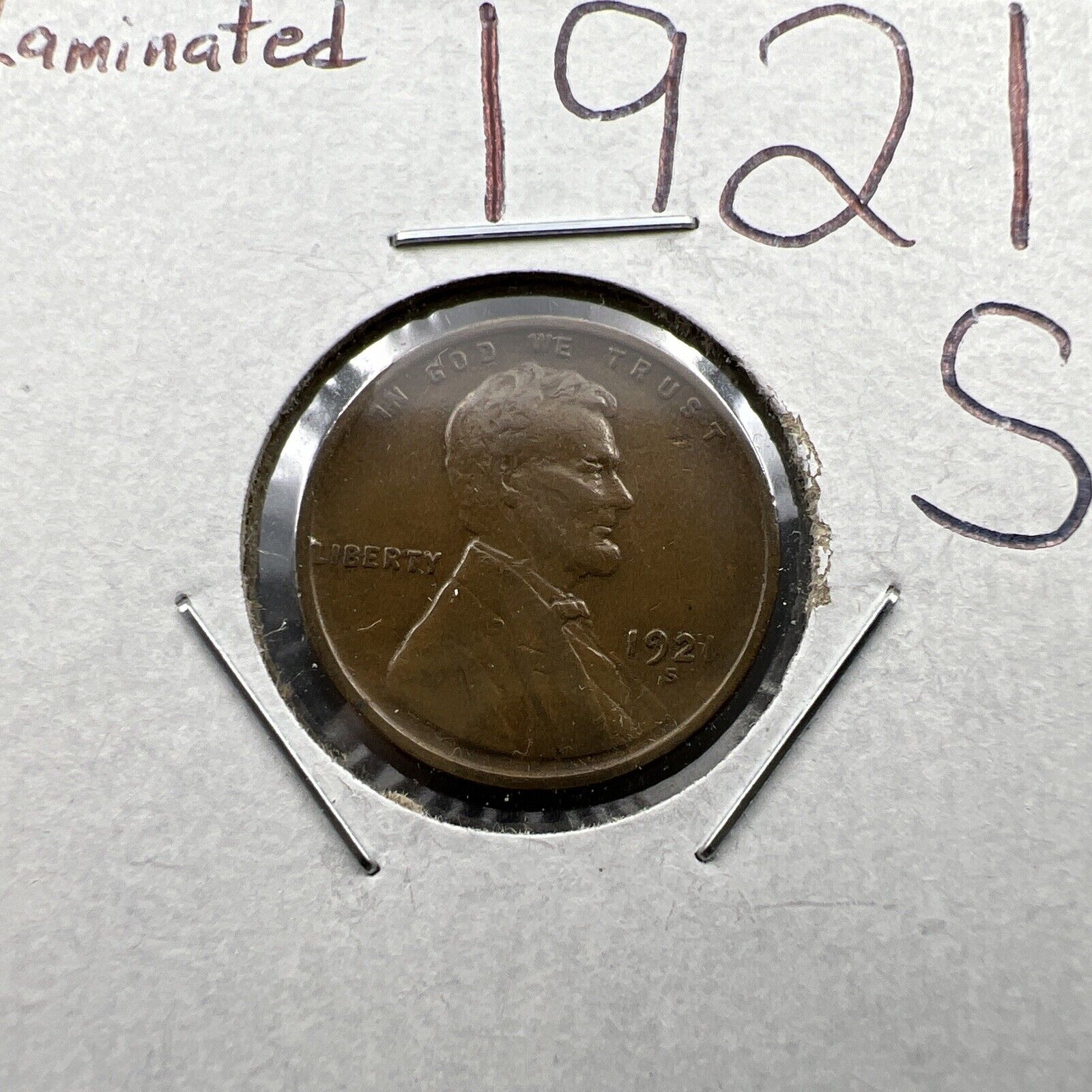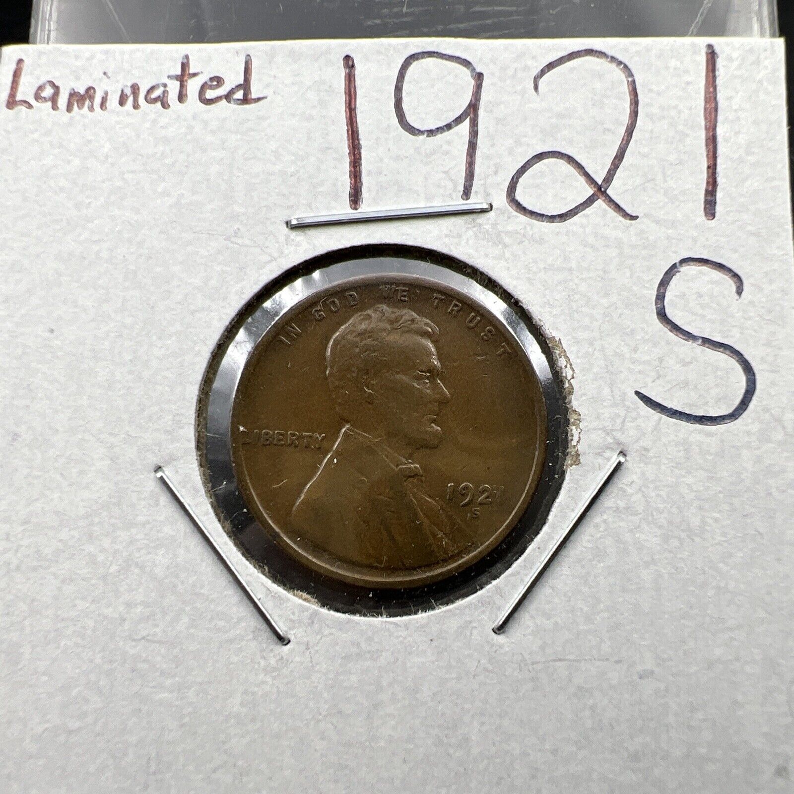 1921 S Lincoln Wheat Cent Penny Choice Fine Circ Laminated Planchet Error REV