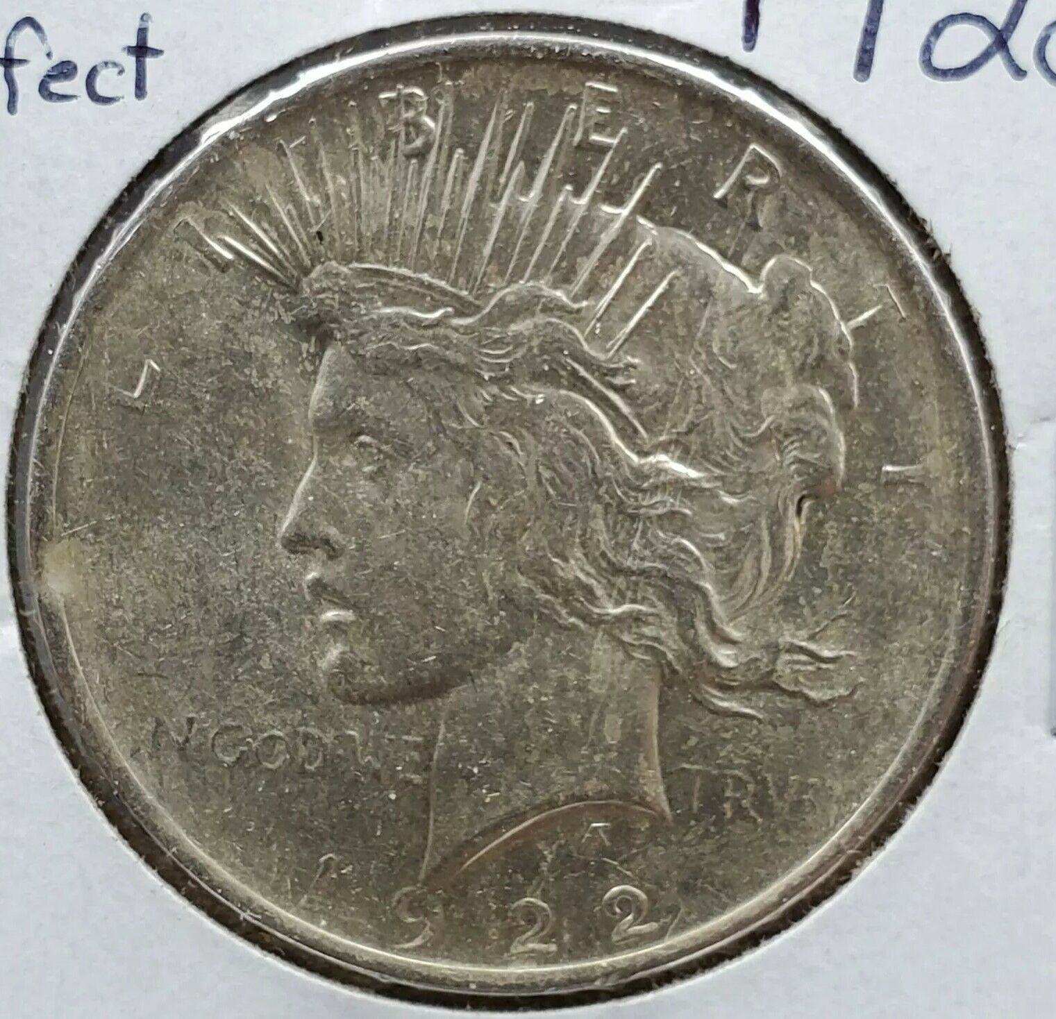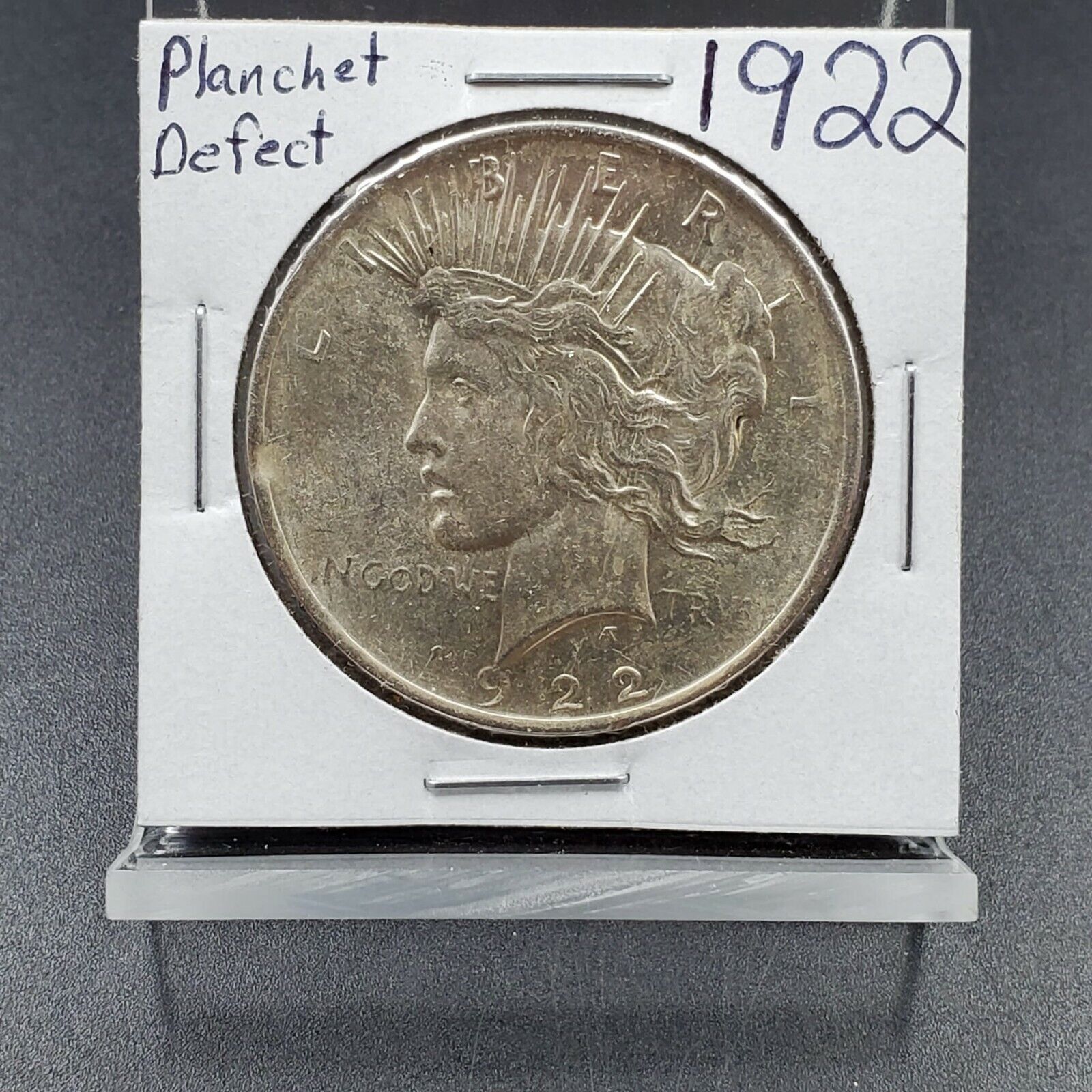 1922 P $1 Peace Silver Eagle Dollar Coin Reverse Planchet Defect Error VF Detail