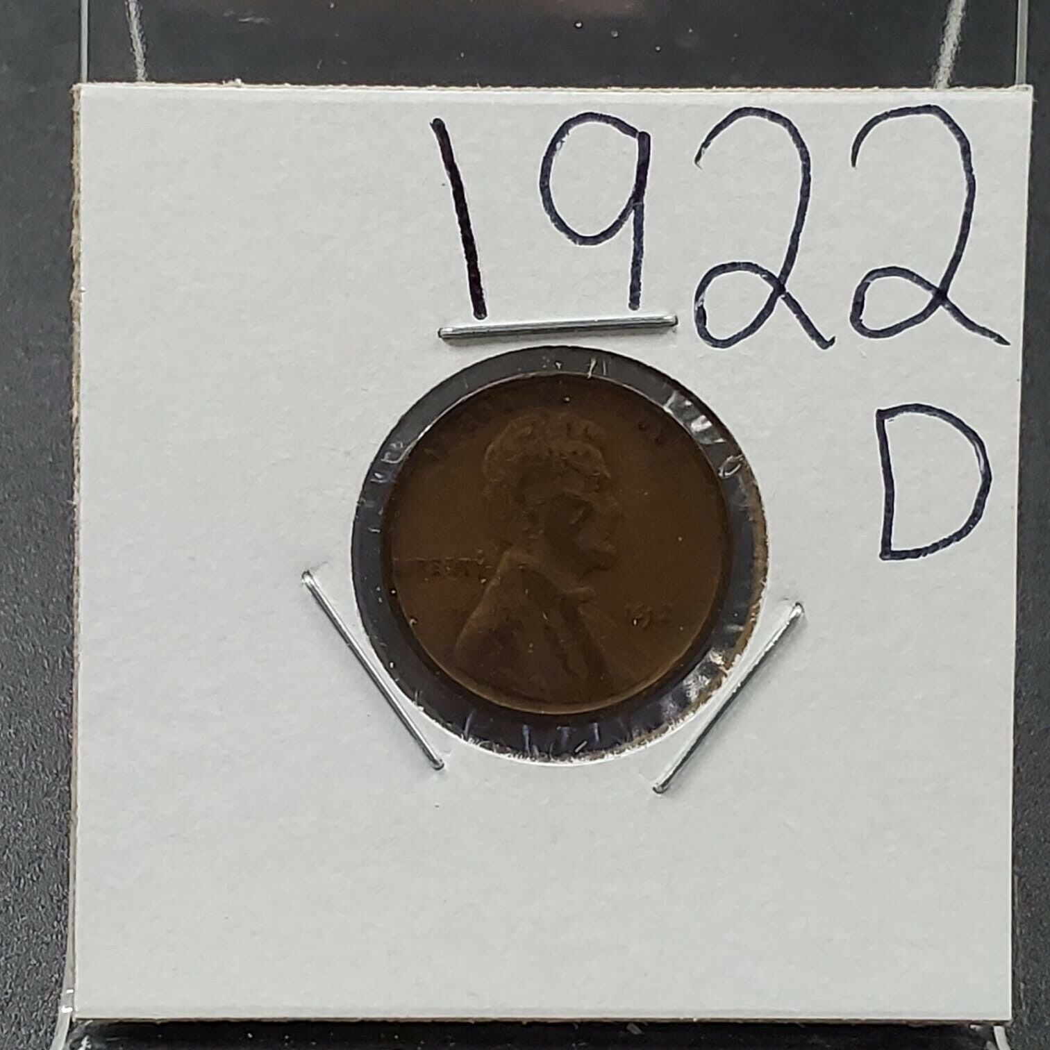 1922 WEAK D Lincoln Wheat Cent Penny Coin Good / VG Very Good