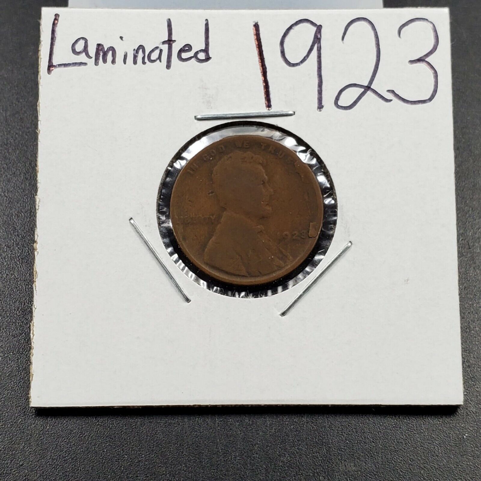1923 p 1c Lincoln Wheat Cent Penny Coin Laminated Planchet Error