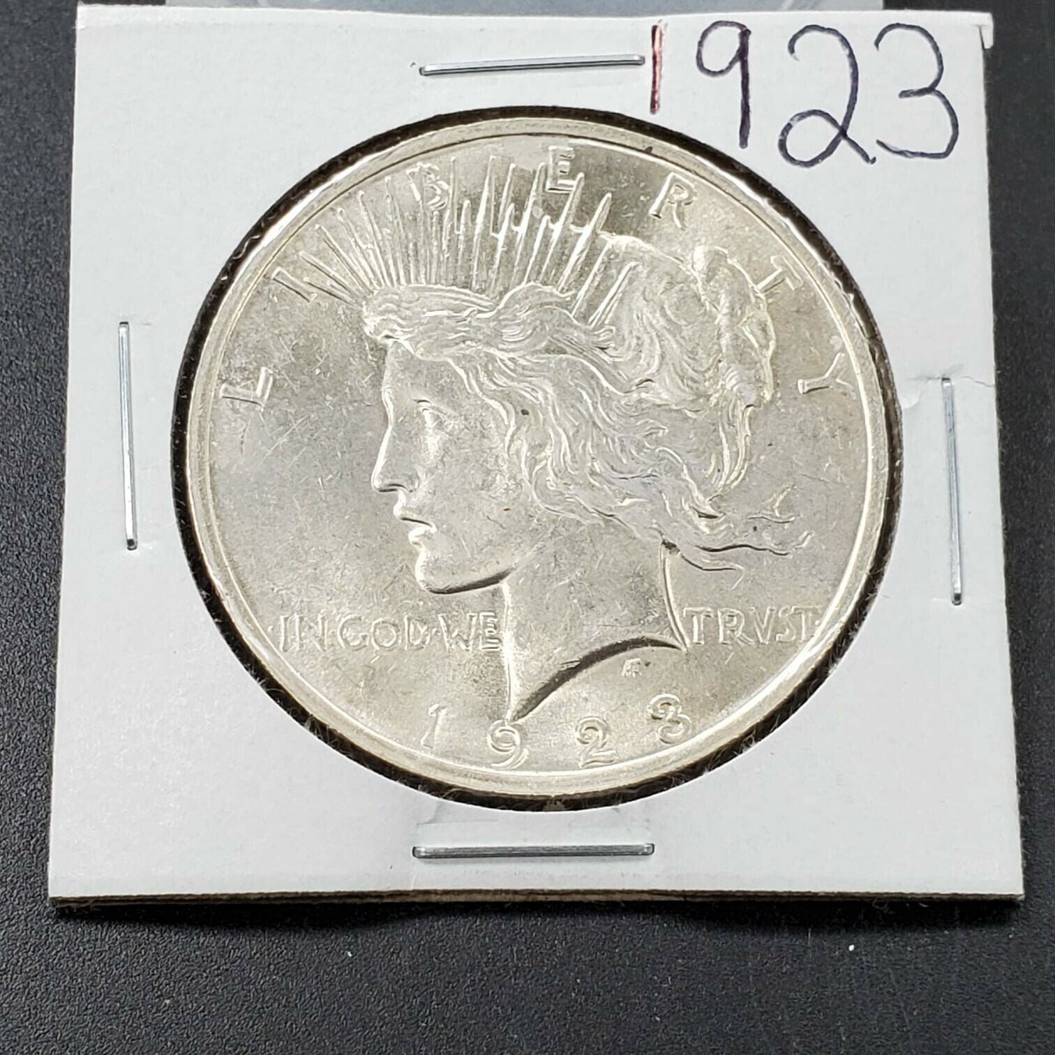 1923 P Peace 90% Silver Eagle Dollar Coin Flashy AVG BU Uncirculated