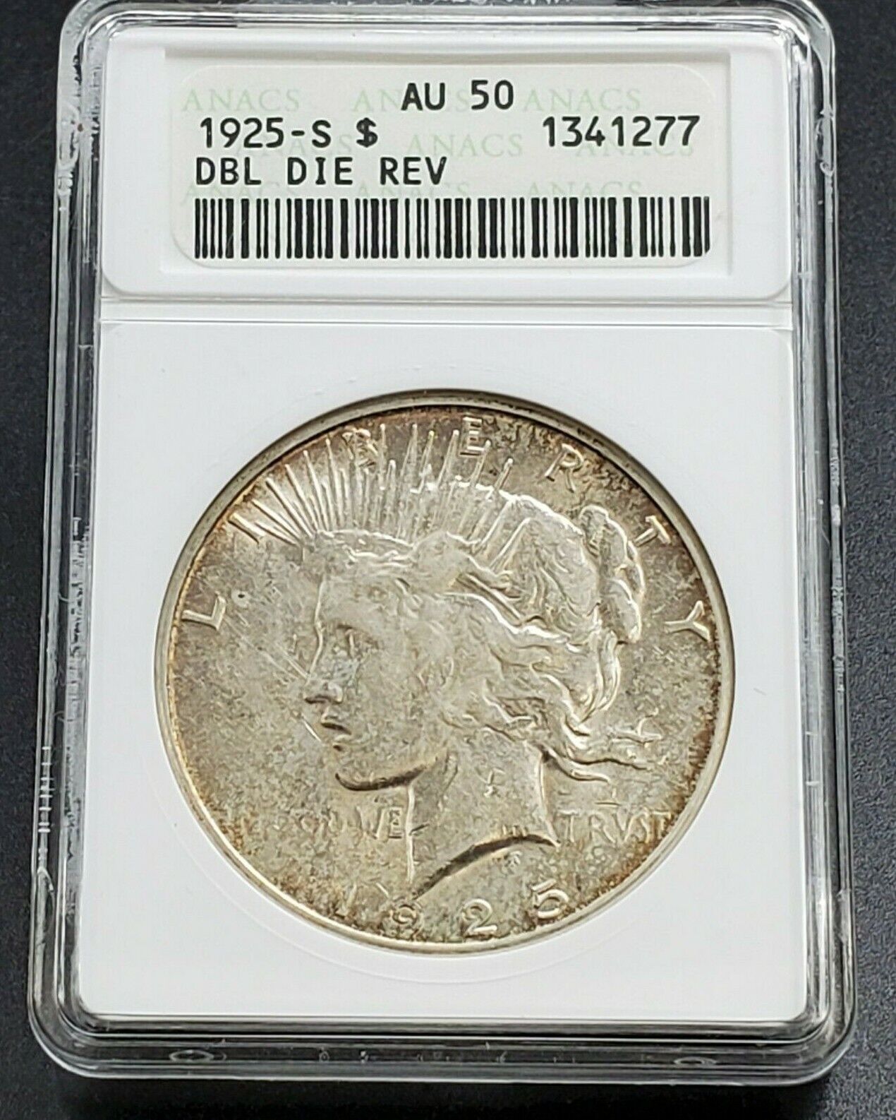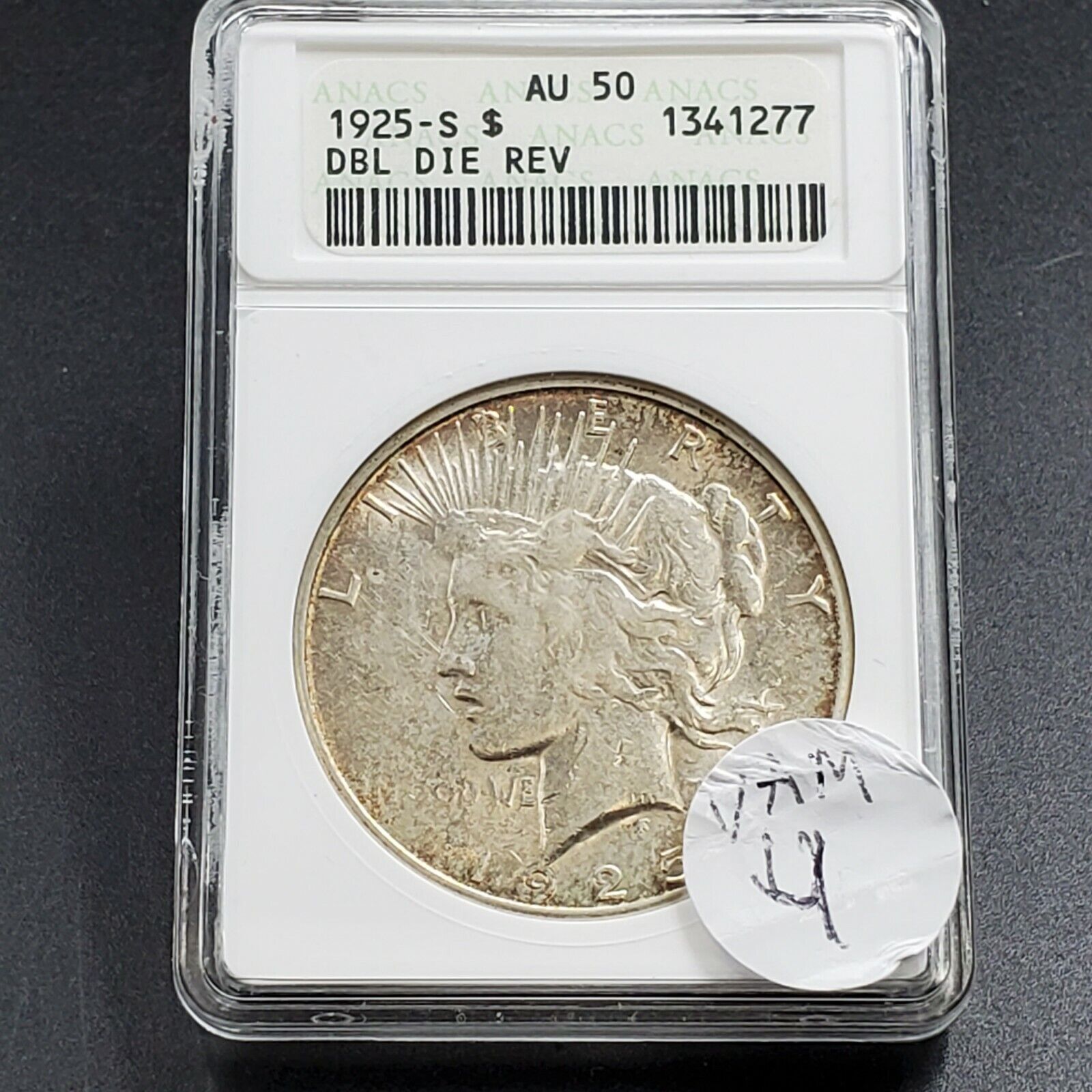 1925 S Peace Dollar Variety ANACS AU50 DDR VAM-4 DBL Denominatio Nice Toning REV