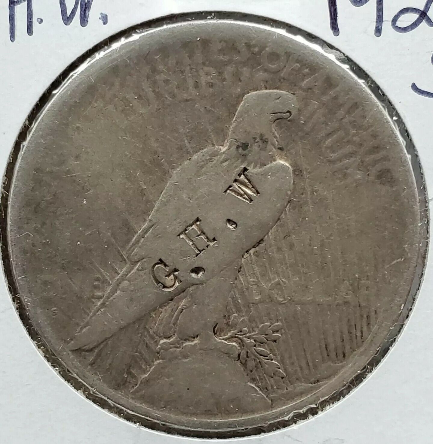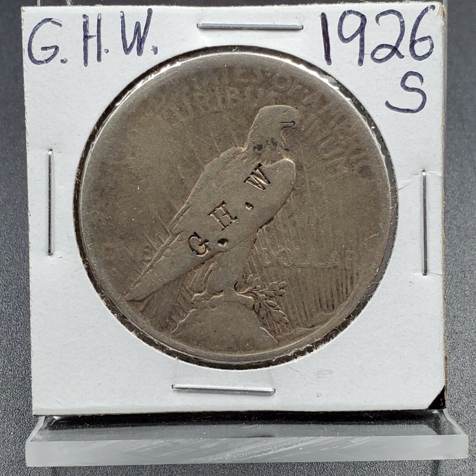 1926 S $1 Peace Silver Eagle Dollar Coin COUNTER STAMPED G. H. W. CIRCULATED