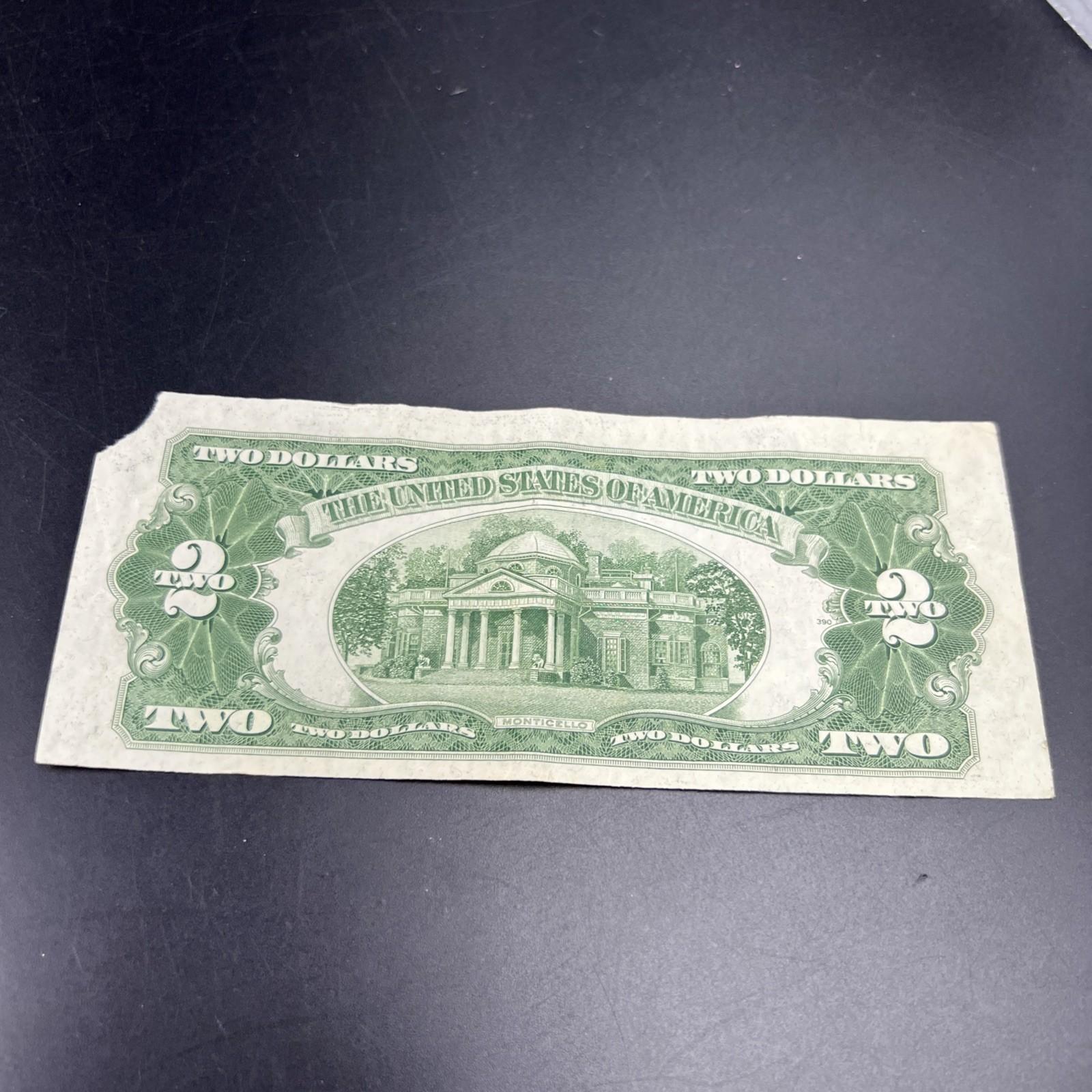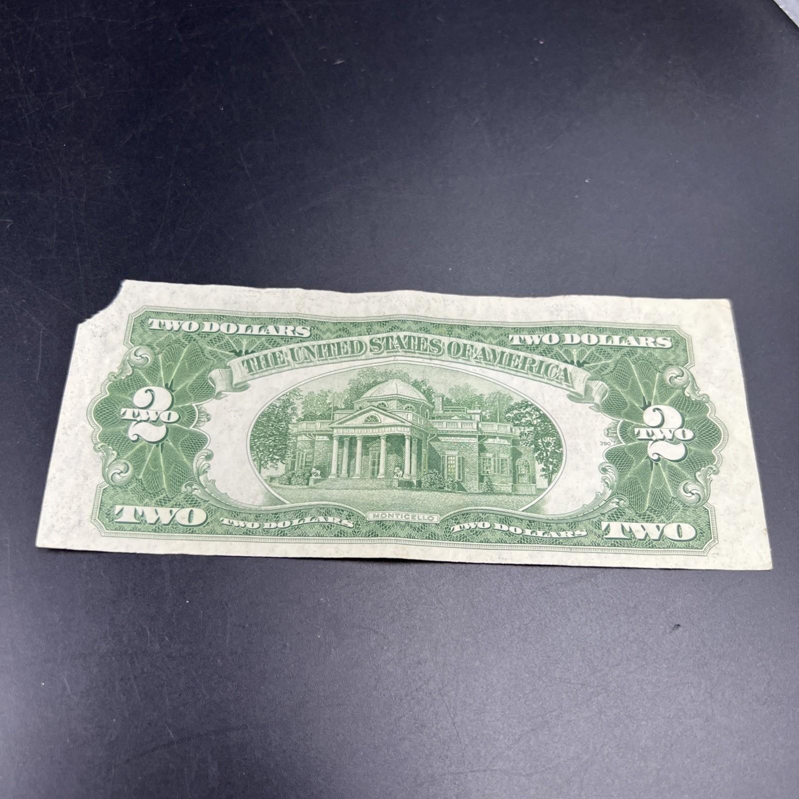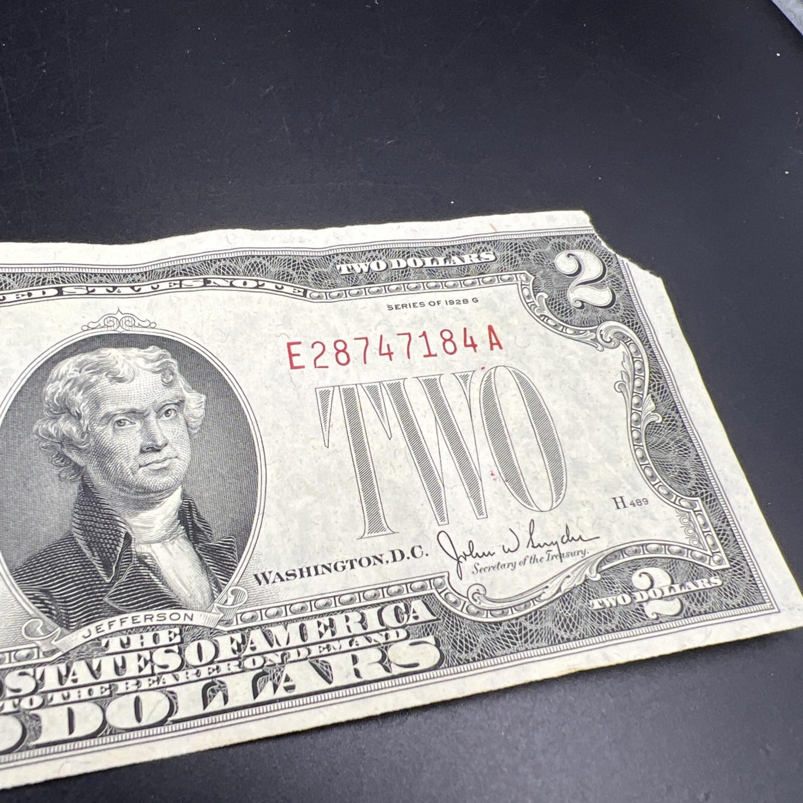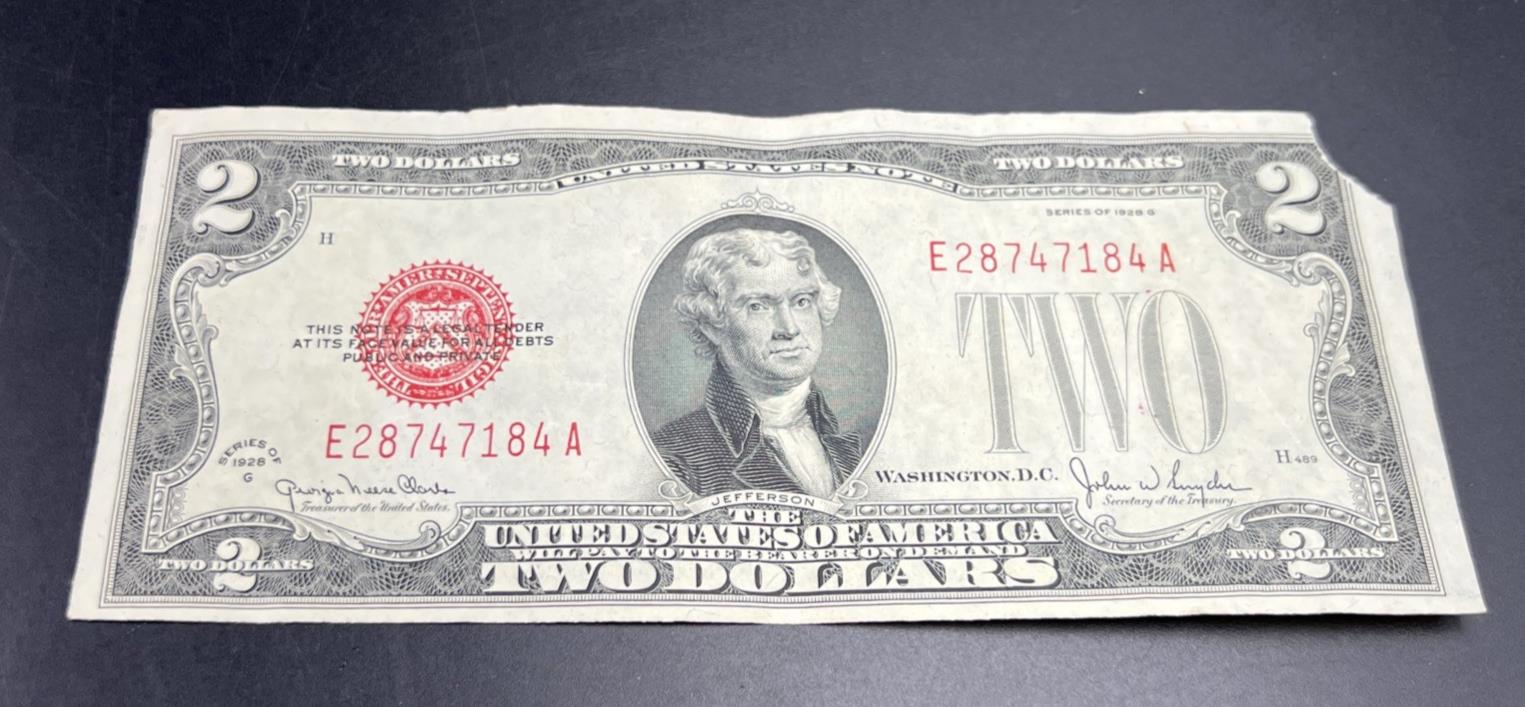 1928 G $2 USN United States Note Red Seal Fine / VF details corner tear #184