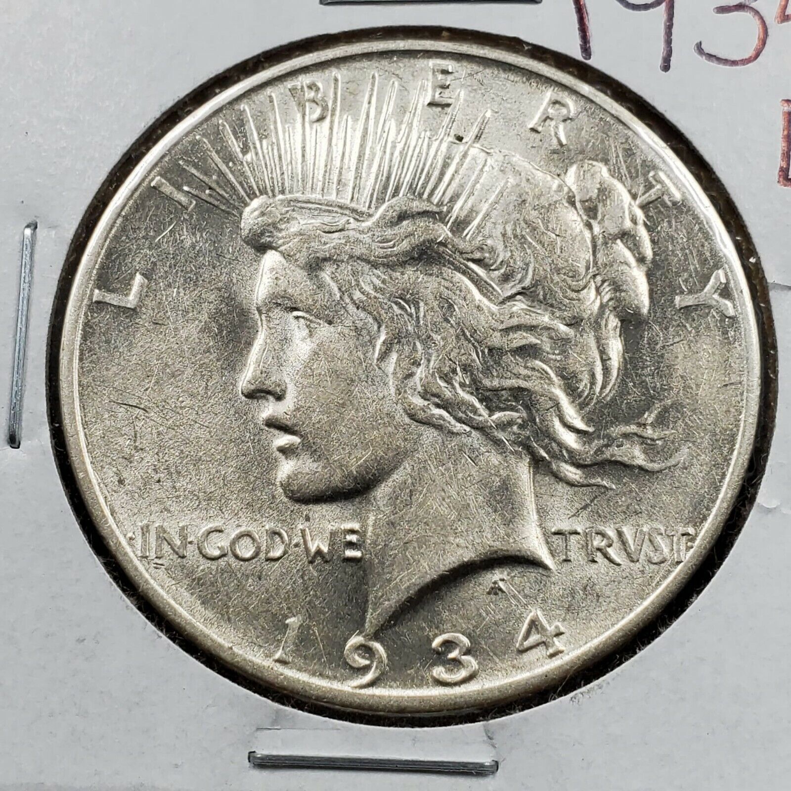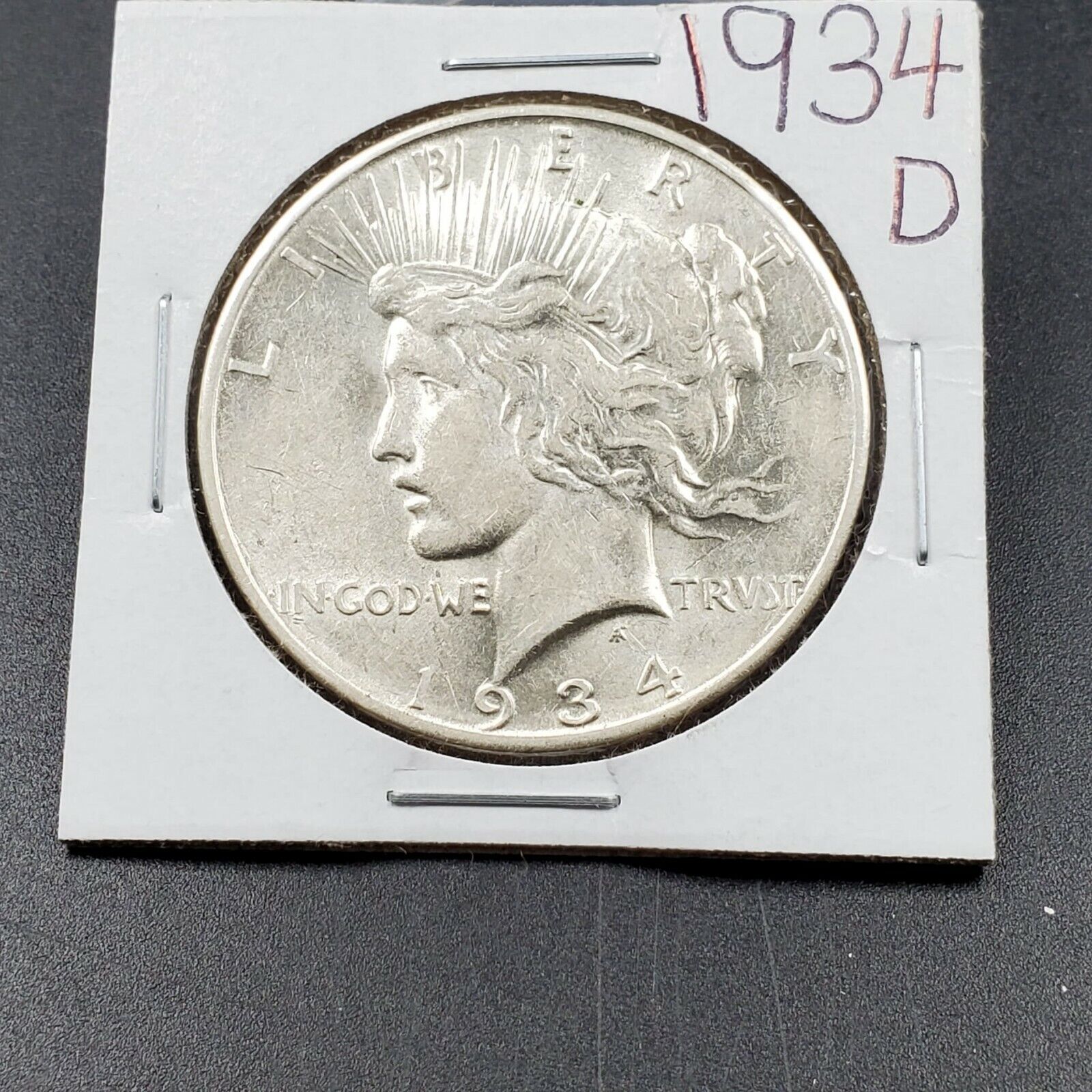 1934 D $1 Peace Silver Dollar AU About UNC Details Cleaned Nice Looking Coin