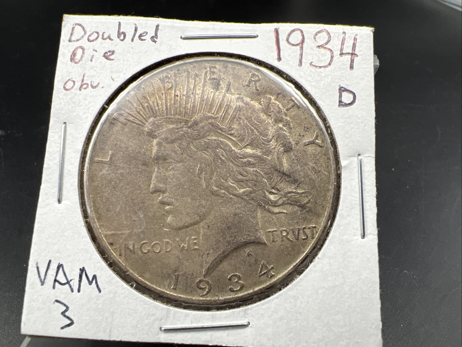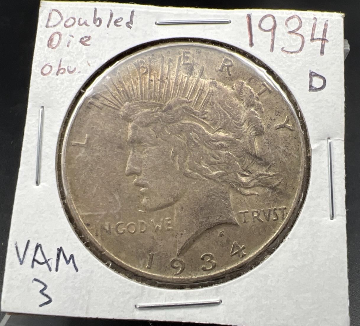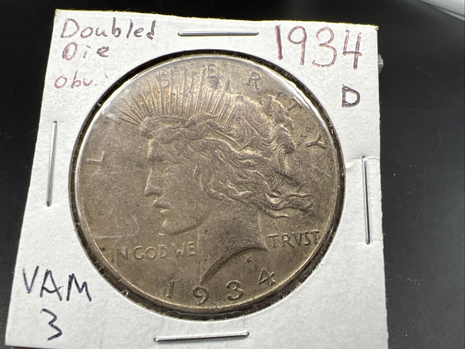 1934 D $1 Peace Silver Dollar Coin Vam 3 Variety Double Die Obverse XF EF Top 50